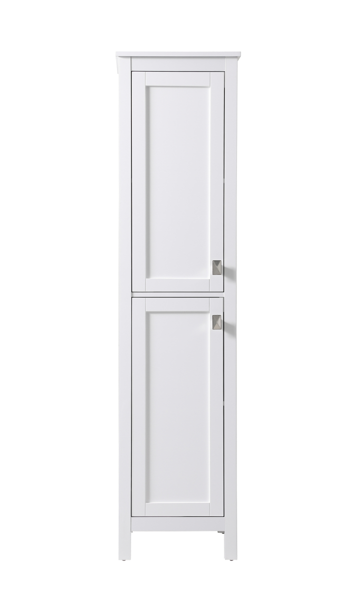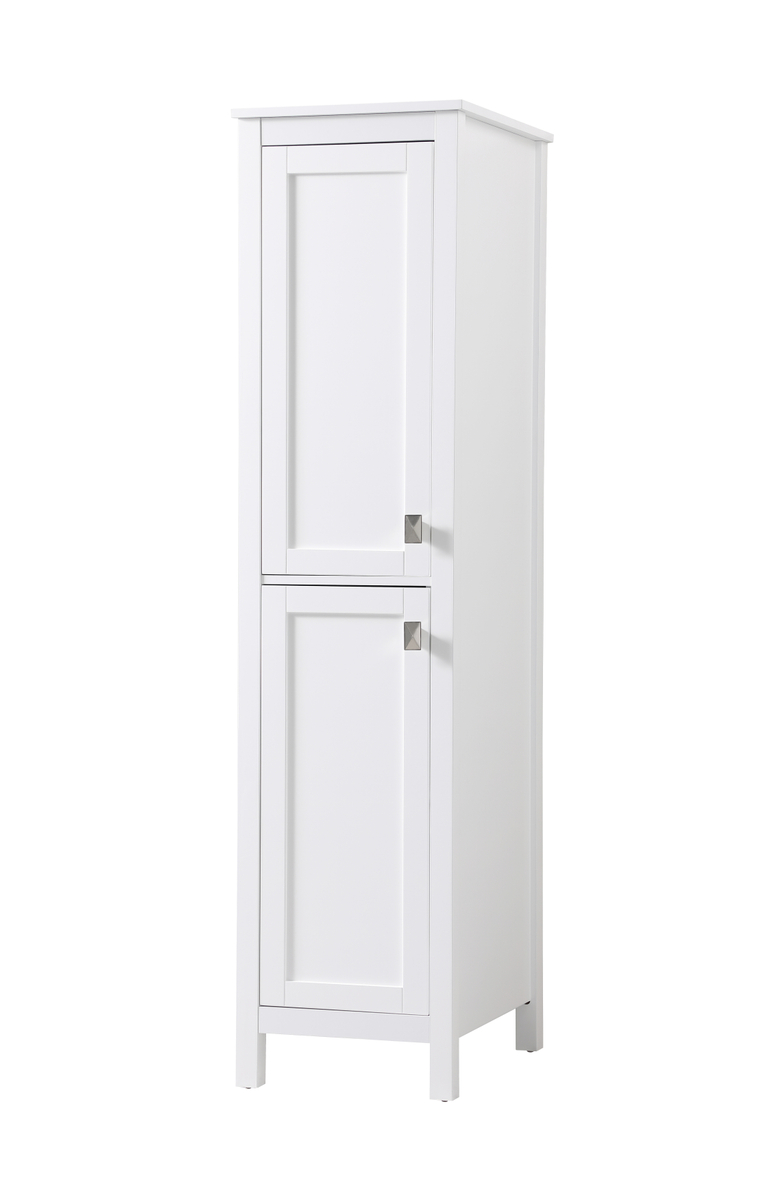 Discover enhanced storage possibilities with our linen storage cabinet, a perfect blend of compact design and ample space, measuring 16″ W x 65″ H x 22″ D. Crafted from durable engineered wood, this cabinet features a sophisticated design including upper and lower doors, crown molding, shaker legs, and zinc hardware, exuding timeless elegance. The top and bottom cabinets equipped with adjustable shelves provide substantial room for toiletries, towels, and more. Experience versatility, convenience, and tranquility with soft-close doors and two adjustable shelves. Arriving fully assembled, it streamlines setup, while various finishes and sizes seamlessly integrate with our bathroom vanity collection.