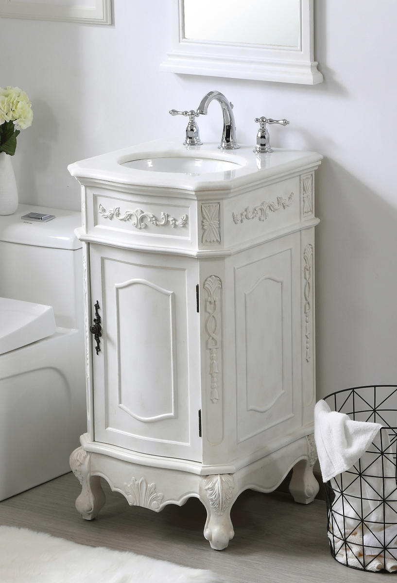 19 inch Single Bathroom vanity in antique white with ivory white engineered marble