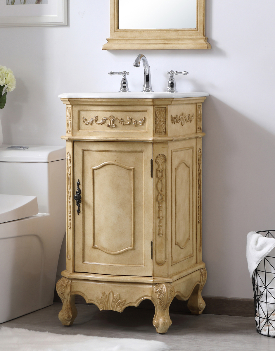 24 inch Single Bathroom vanity in Antique Beige with ivory white engineered marble