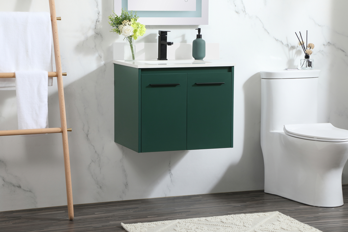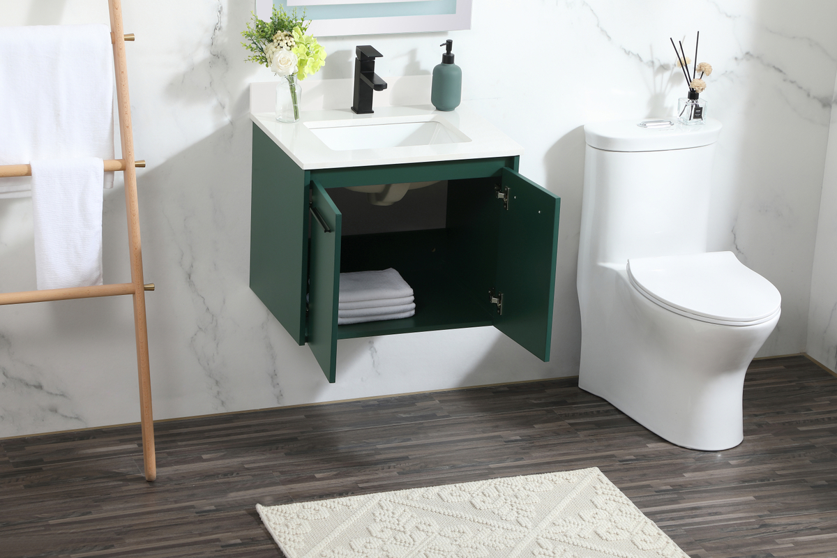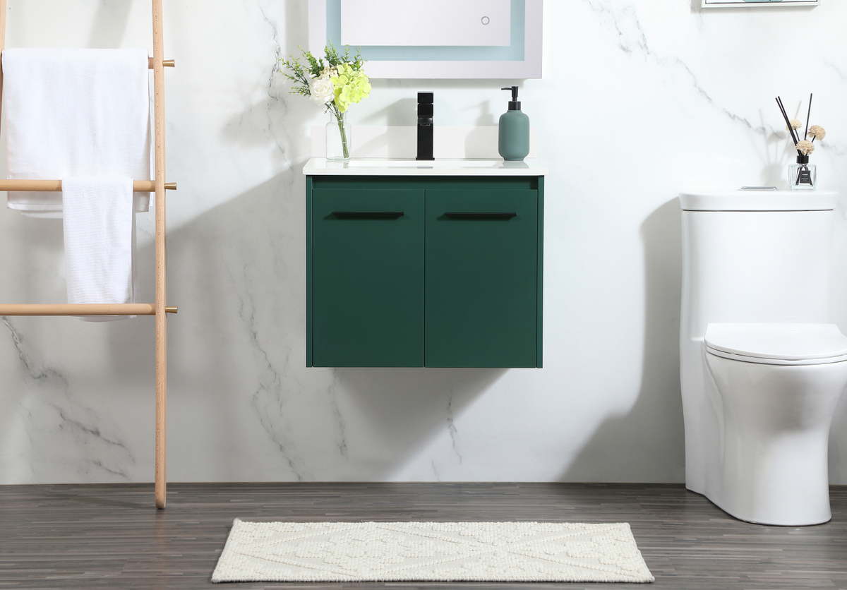 24 inch Single bathroom vanity in green with backsplash