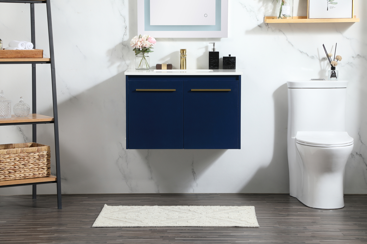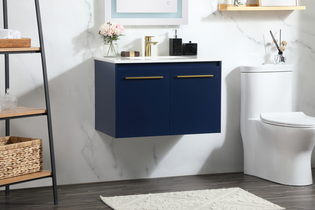 Save space and make your bathroom appear bigger with this floating vanity that comes in several finishes. Its minimal design will have you in awe, while its clean lines will leave your room feeling fresh and uncluttered. The Single cabinet opens with soft closing doors that allows for storage to place extra towels or various other essentials. Its low maintenance and durable engineered marble top will surely last through many washes.