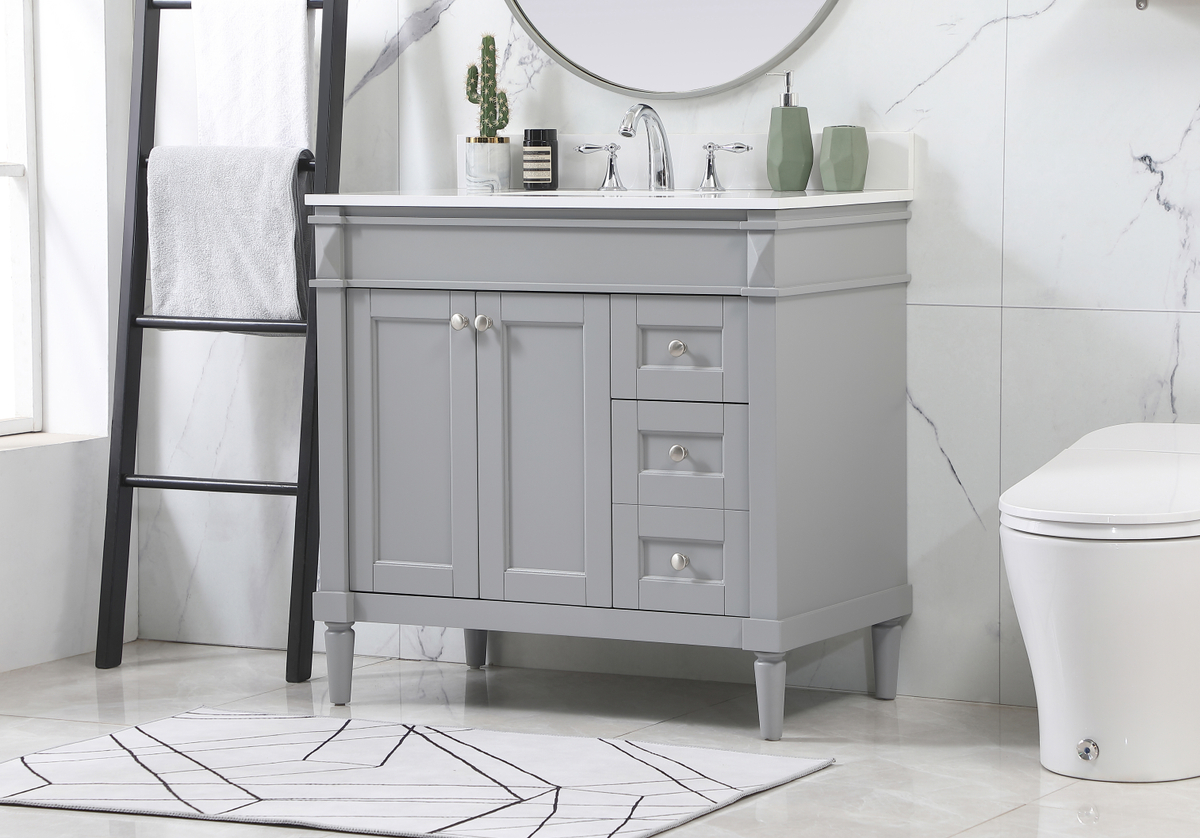 36 inch Single bathroom vanity in grey with backsplash