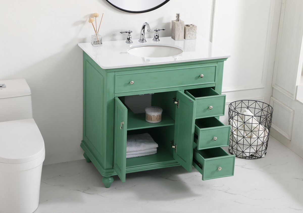 36 inch Single Bathroom vanity in vintage mint with ivory white engineered marble
