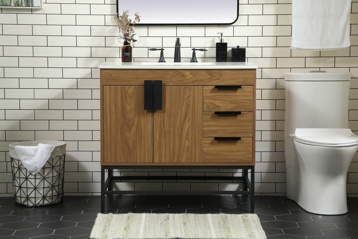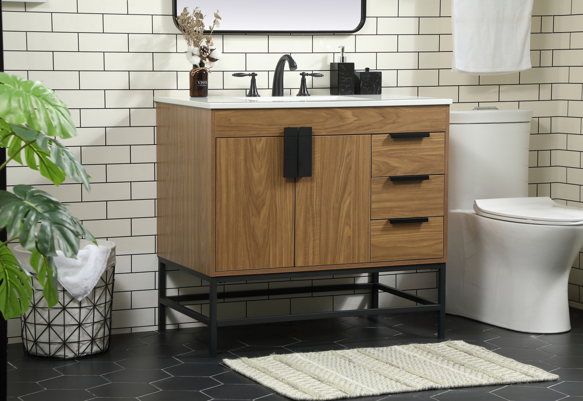 36 inch Single bathroom vanity in walnut brown