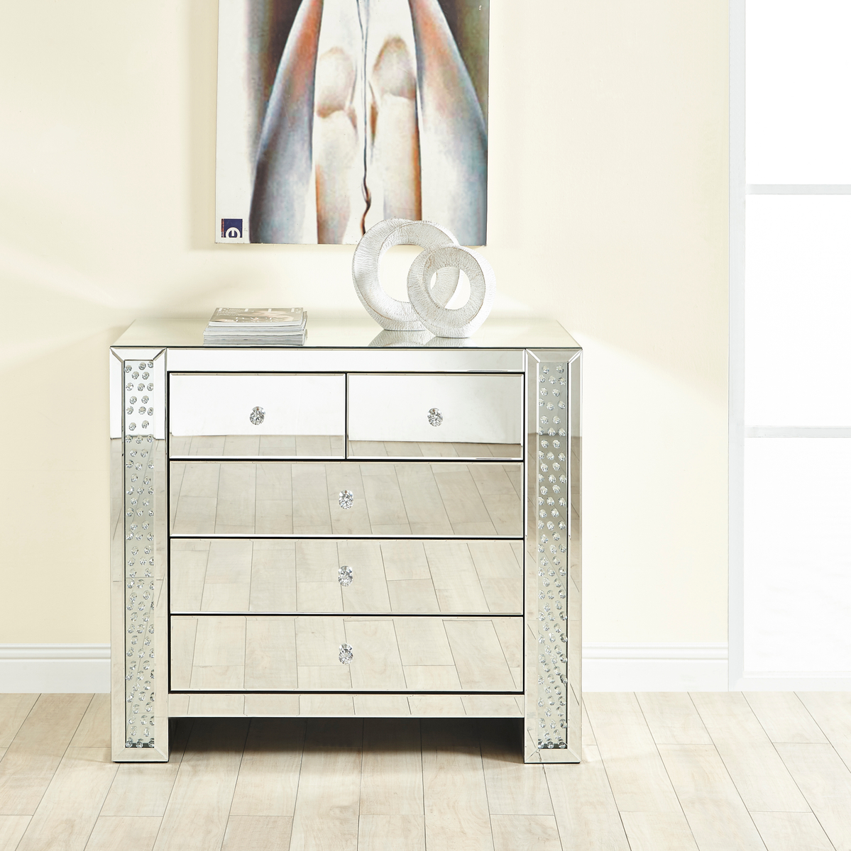 39.5 inch Crystal five drawers Cabinet in Clear Mirror Finish