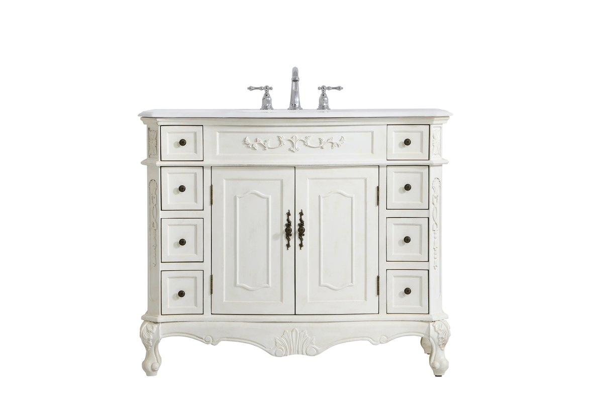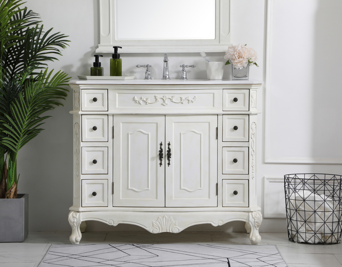 42 inch Single Bathroom vanity in Antique White with ivory white engineered marble