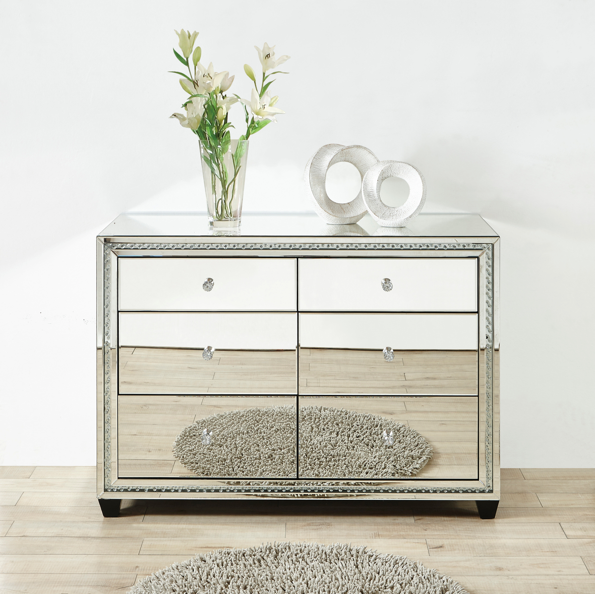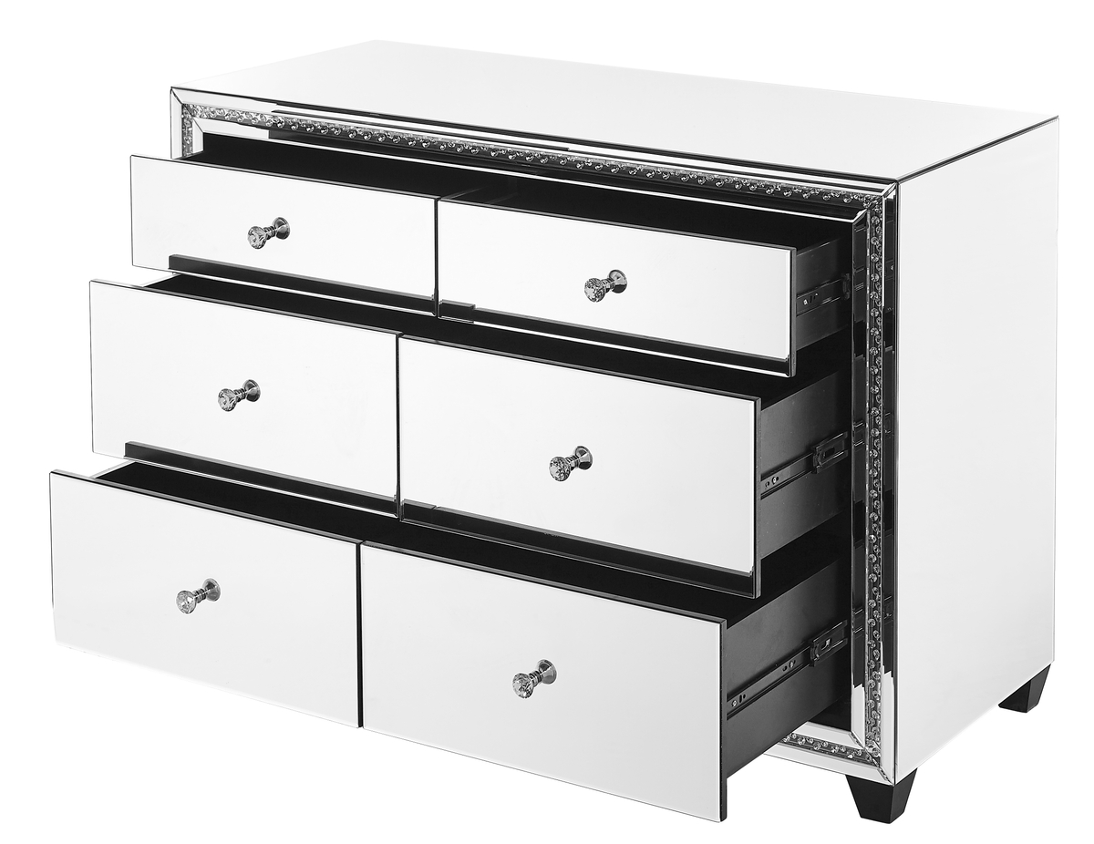 47 inch Crystal six drawers Cabinet in Clear Mirror Finish
