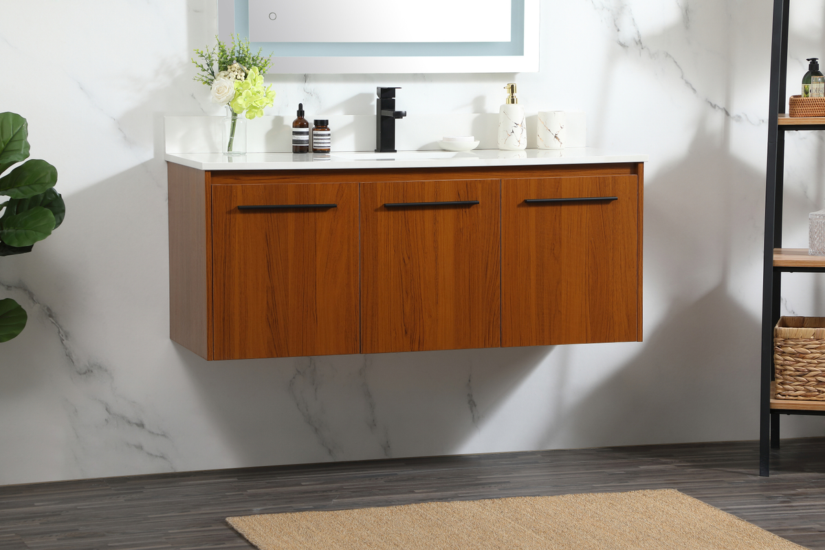 48 inch Single bathroom vanity in teak with backsplash