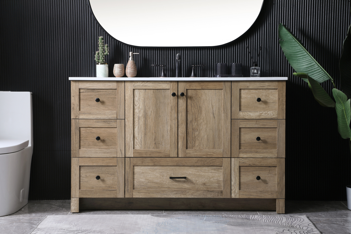 54 Inch SIngle Bathroom Vanity In Natural Oak