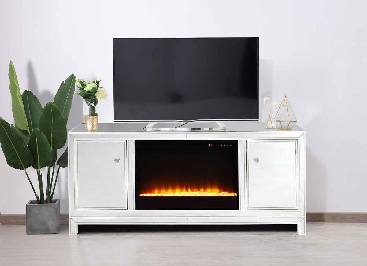 This TV stand is a showstopper with its clean white finish, clear mirror panels, and sparkling crystal knobs. It’s a piece of furniture that adds a touch of glamour and sophistication to any room.