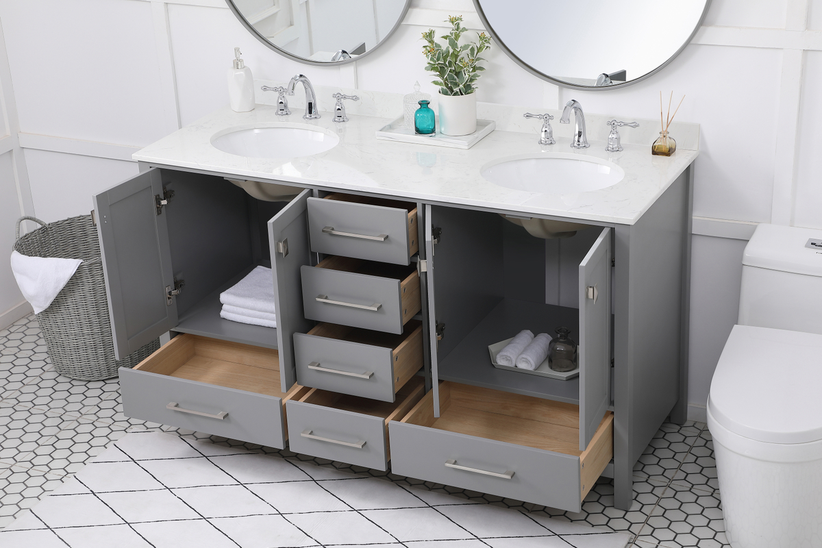 60 inch Double Bathroom Vanity in Gray with Backsplash