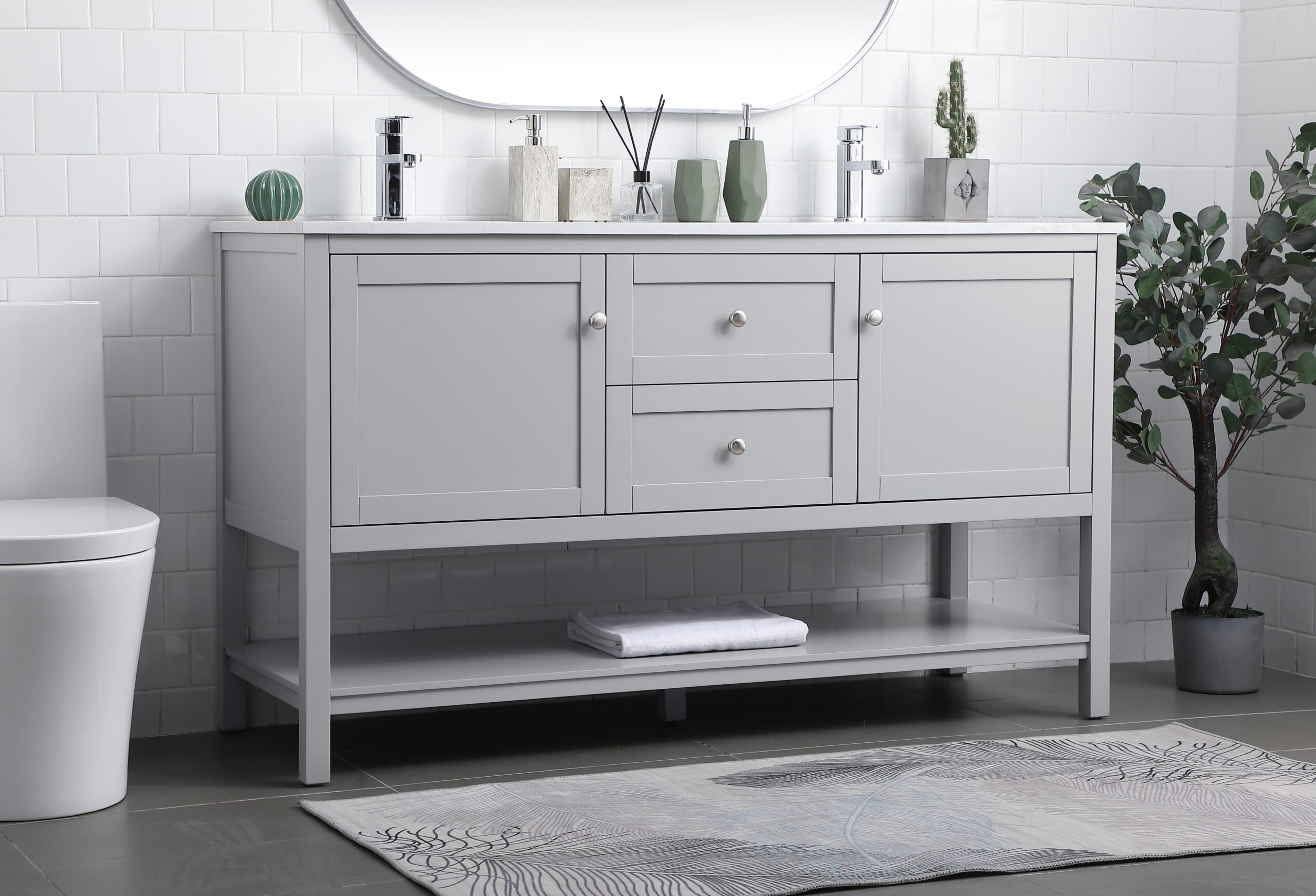 60 Inch Double Bathroom Vanity In Grey