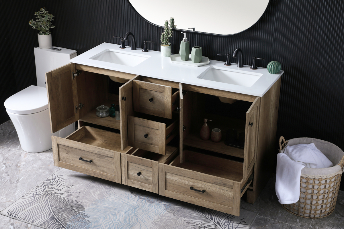 60 Inch Double Bathroom Vanity In Natural Oak