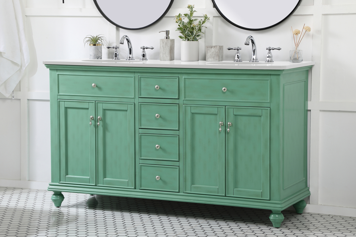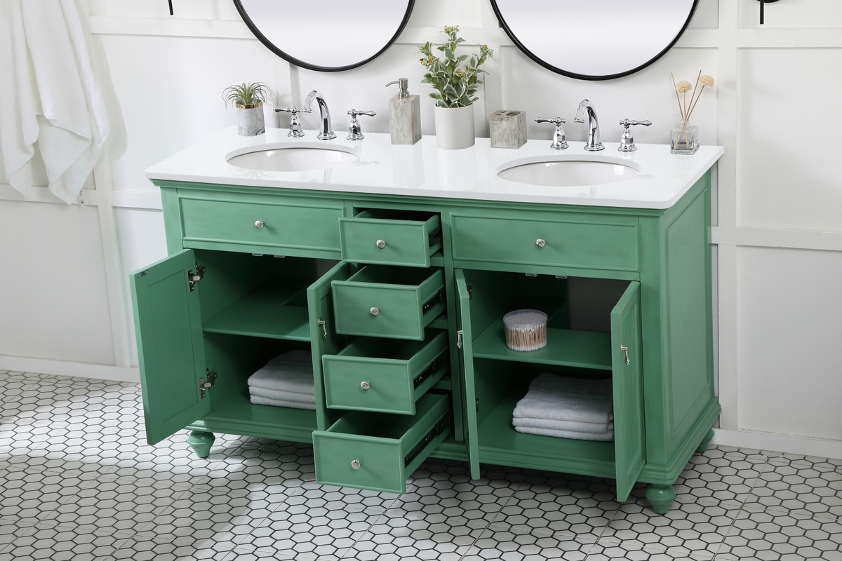 60 inch double Bathroom vanity in vintage mint with ivory white engineered marble
