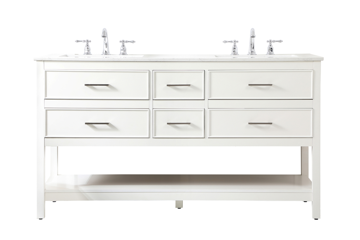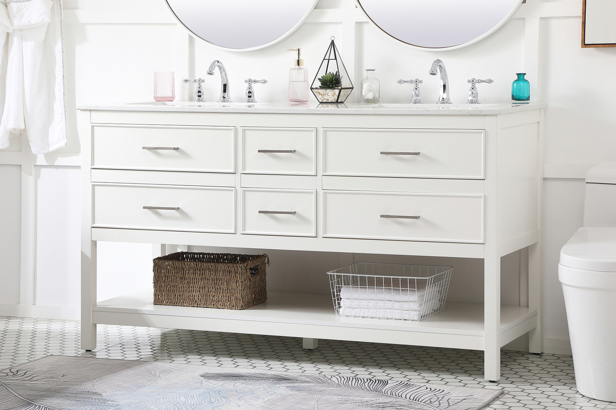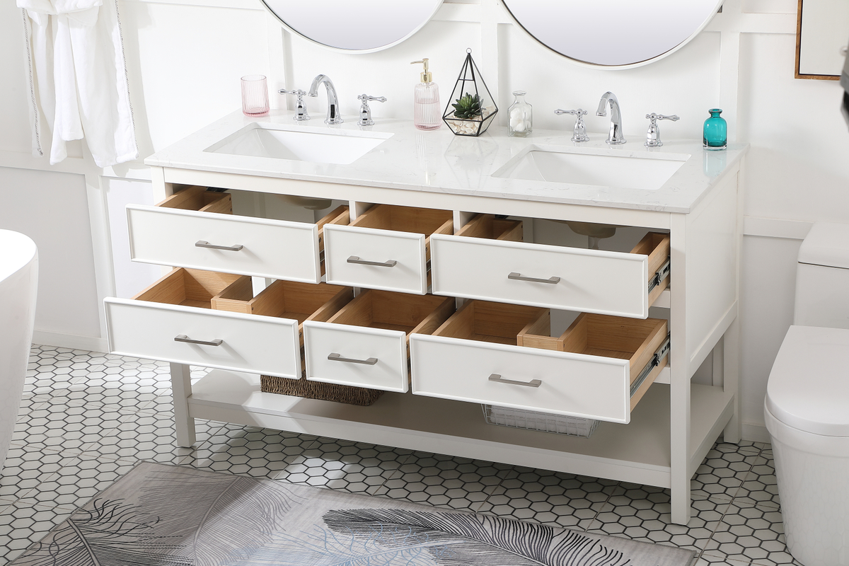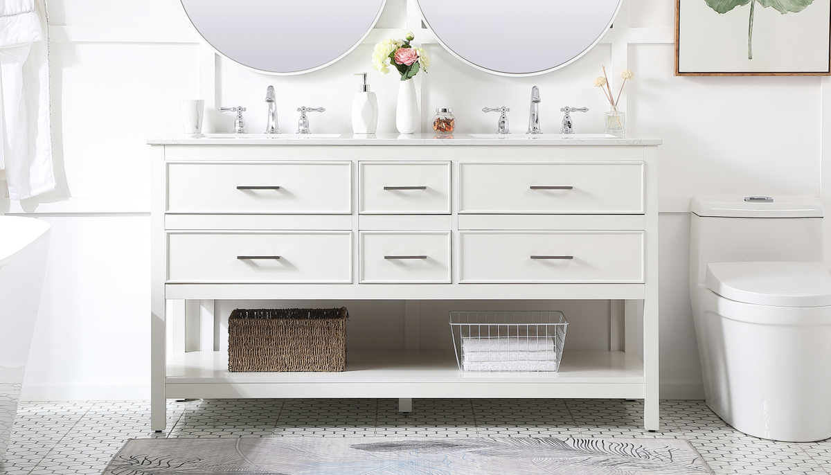 60 inch double bathroom vanity in white