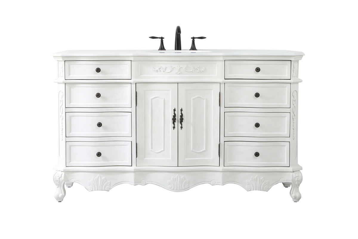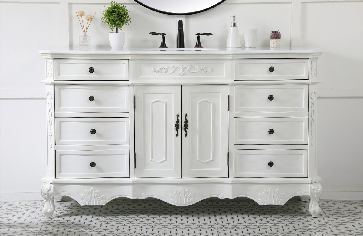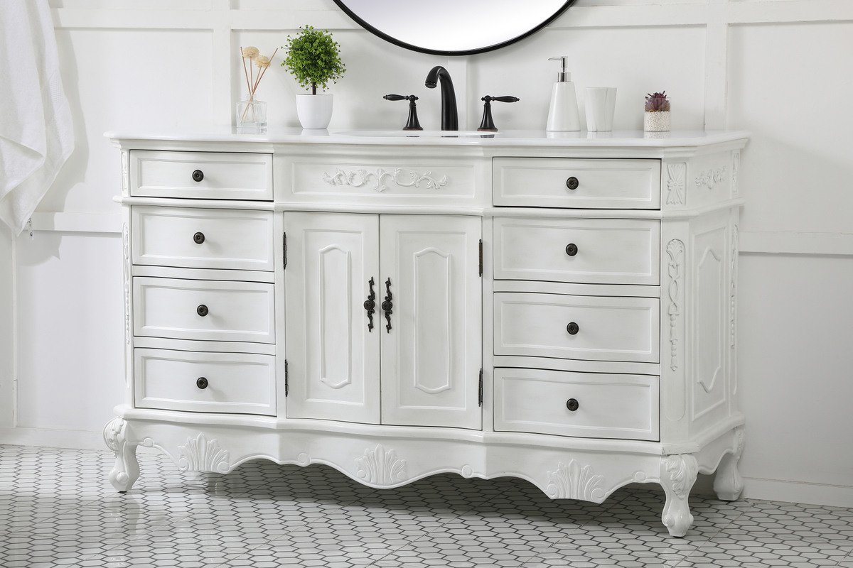 60 inch Single Bathroom vanity in antique white with ivory white engineered marble