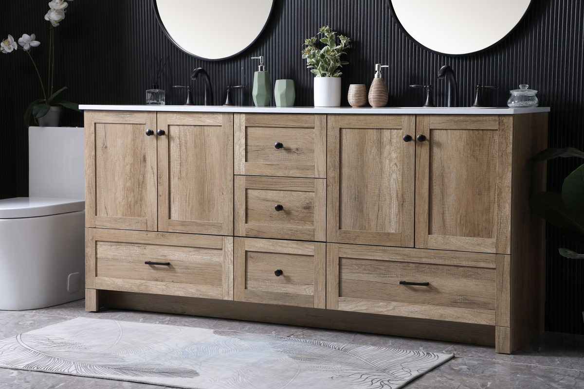 72 Inch Double Bathroom Vanity In Natural Oak