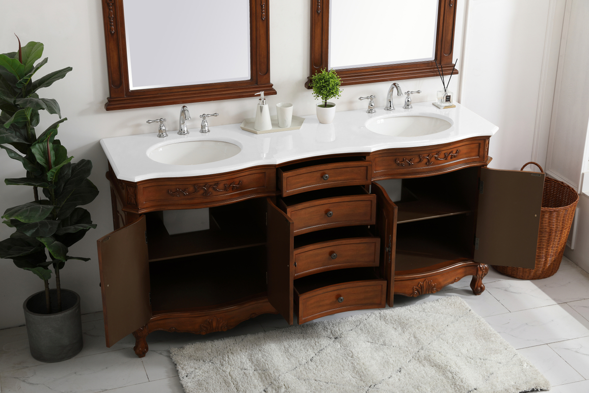 72 inch Double Bathroom vanity in Teak with ivory white engineered marble