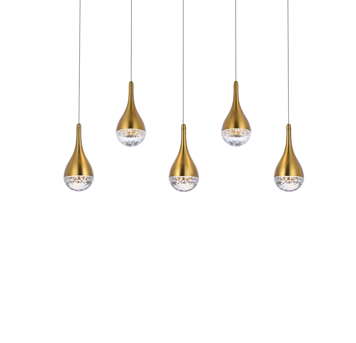The pendant features 5 mesmerizing linear solid bubble crystal design that adds a touch of glamour and sophistication to any space. The solid crystals create a stunning play of light and reflections, illuminating your room with a radiant glow.