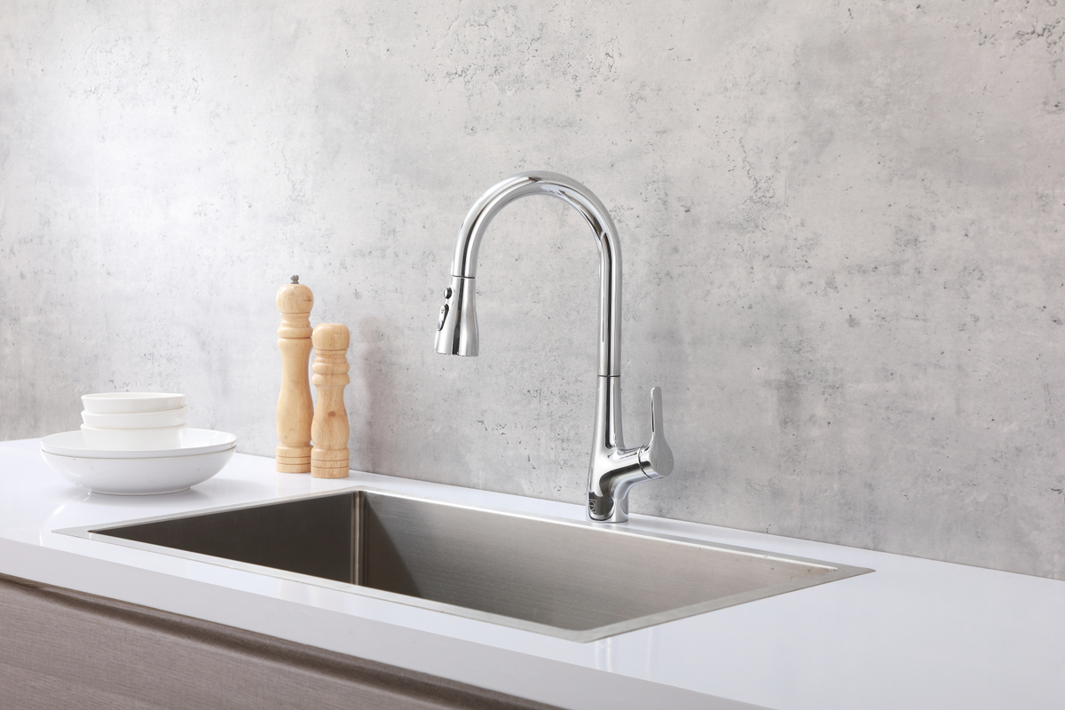 Discover the pinnacle of kitchen convenience with our single-handle lever faucet, granting seamless water control for all culinary needs. Crafted from durable brass with corrosion-resistant properties, this fixture endures even the busiest kitchens, maintaining both beauty and functionality. Embrace flexibility and reach with the retractable pull-down hose, simplifying tasks like rinsing, cleaning, and filling kitchen items with ease. Certified by UPC and IAPMO for safety and quality, rest assured of its reliability. Effortlessly switch between soft spray and aerated rinse modes for versatile use. With a maximum flow rate of 1.8 gallons per minute, it delivers powerful yet water-efficient performance, aiding in cost savings without compromising capability. The gooseneck design adds an elegant touch while offering practicality for washing large pots and dishes effortlessly. Equipped with a high-quality ceramic cartridge, expect enduring, drip-free operation, making daily chores a breeze.