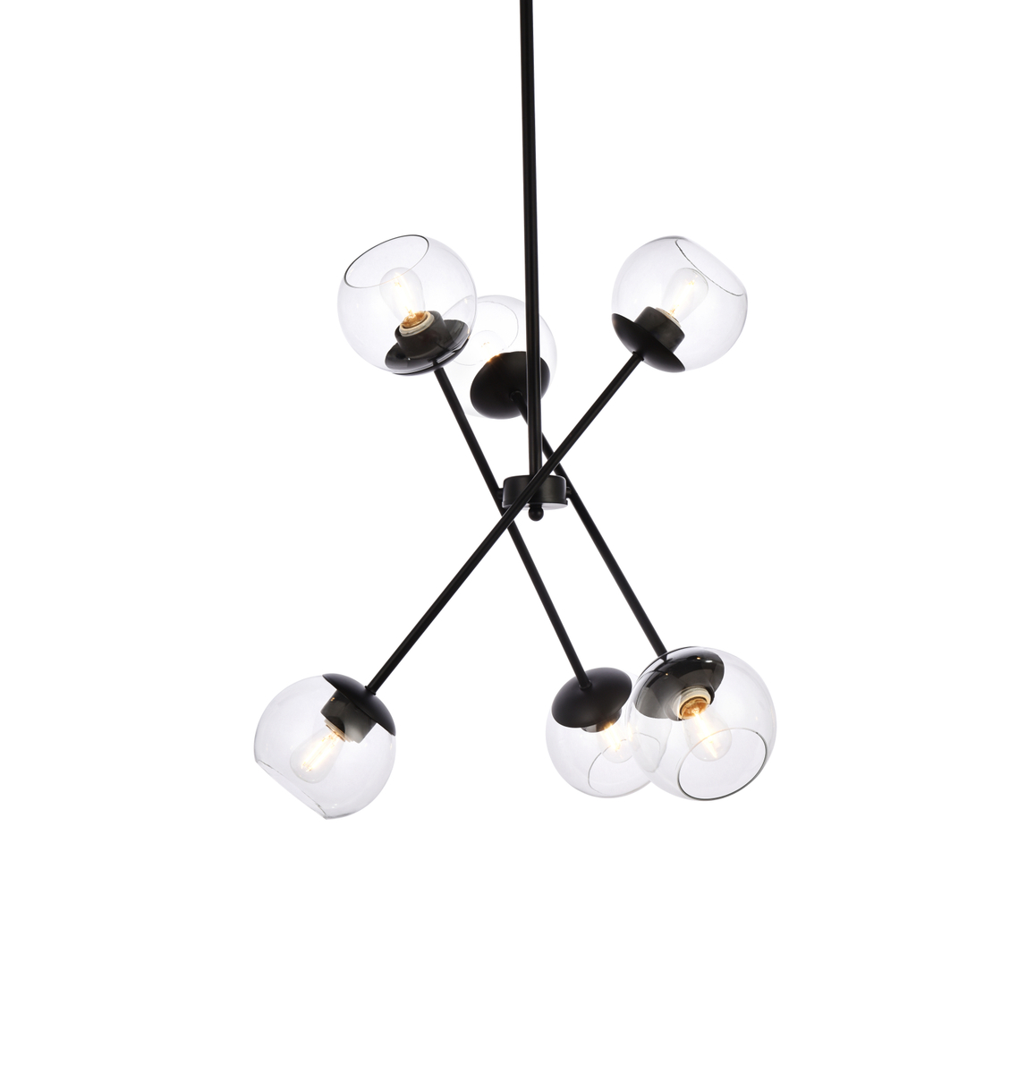 The multi-directional lines on this 6-light sputnik chandelier bring an architectural look over the dining room table or kitchen island. It has a circular canopy and an adjustable downrod to suit any space. The sleek, sputnik-inspired lines zigzagging in all directions freshen up any modern home. At the end of each rod, there is one glass shade with one candelabra-style bulb up to 60W (not included) that aims ambient light wherever you hang it. Best of all, this hardwired chandelier is compatible with a dimmer switch, allowing you to change up the lighting throughout the day.
