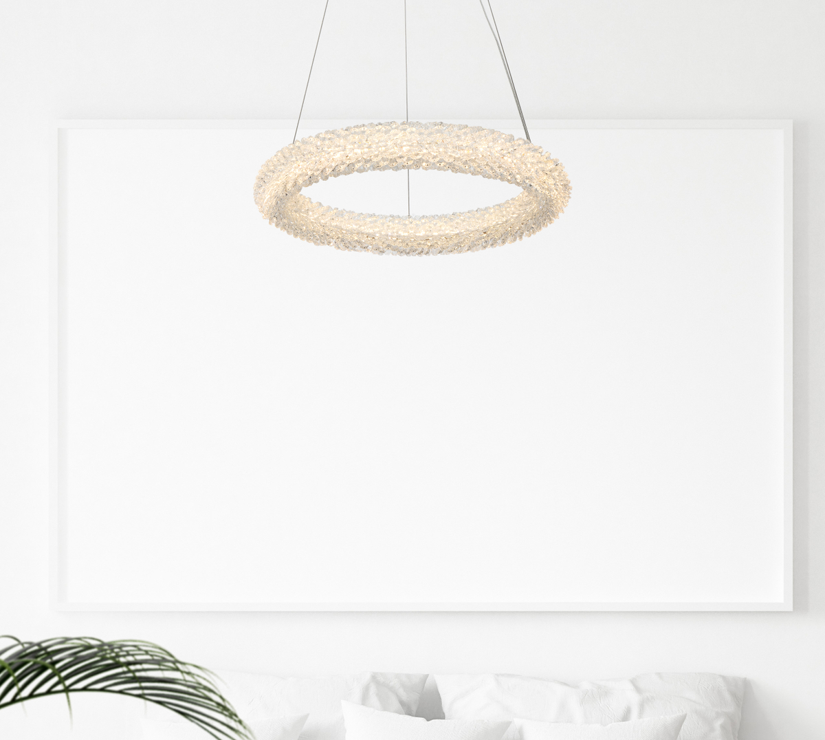 Elevate your space with the chic design of the 18-inch LED Chandelier, featuring a stunning round crystal-adorned chandelier and a 7-inch canopy for a touch of sophistication.