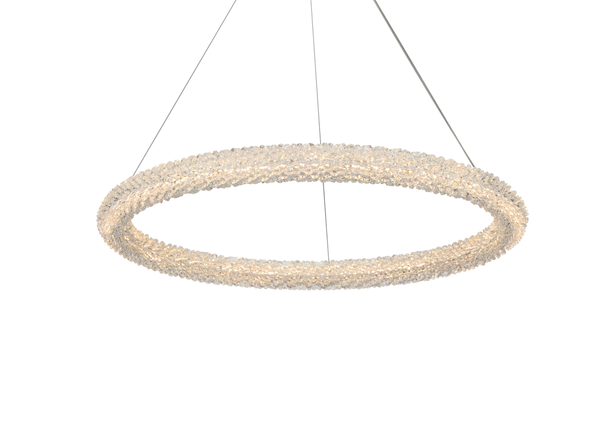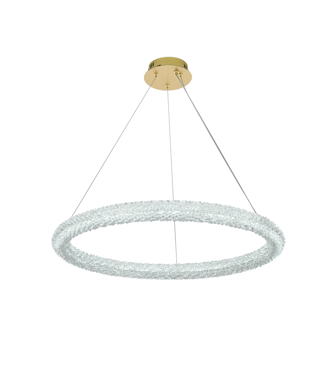 Elevate your space with this captivating 32 inch LED Chandelier, presenting a captivating round crystal-adorned chandelier paired with an elegant 7-inch canopy for a touch of sophistication.