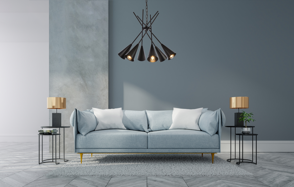 asymmetrical design with metal cone shaped shades