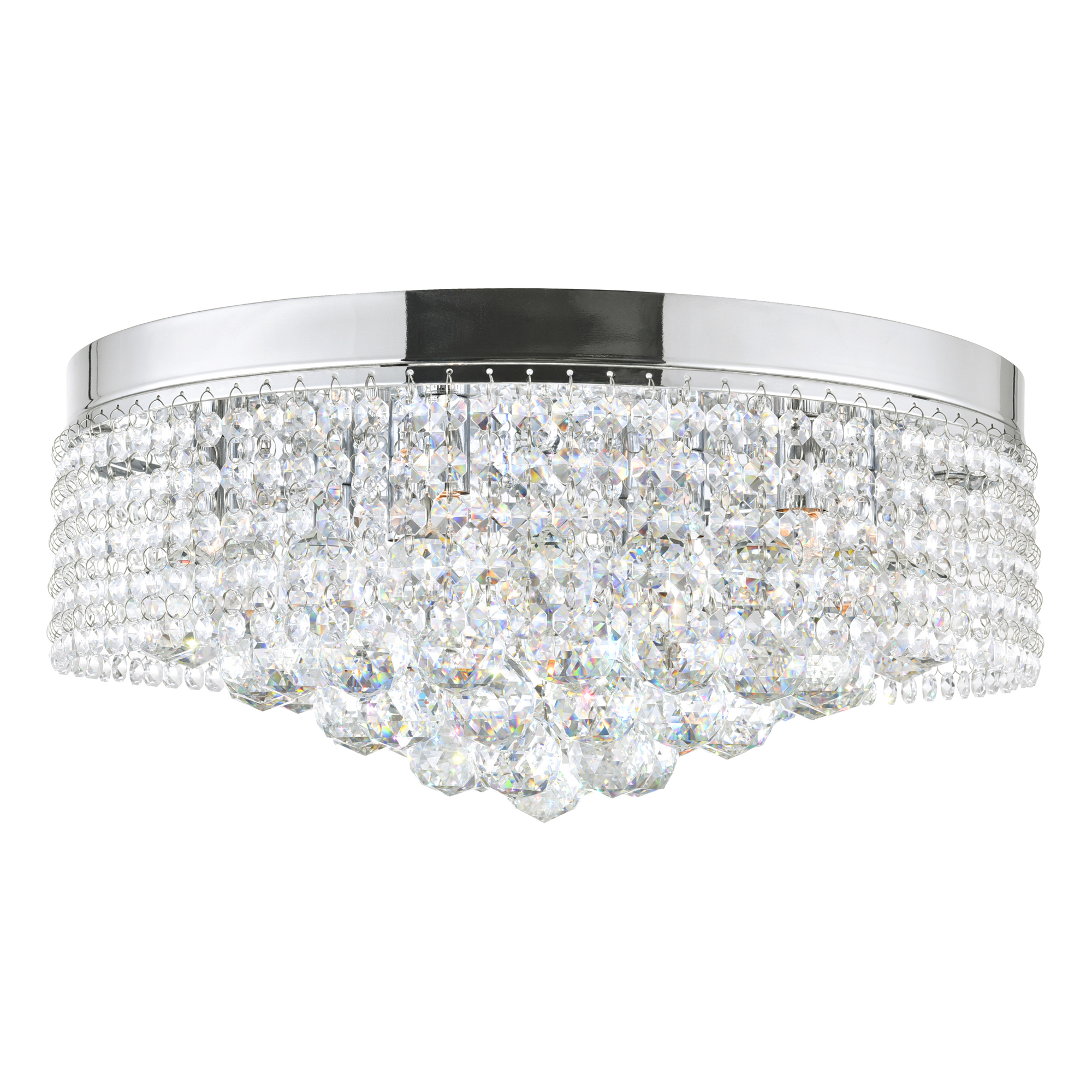 A truly stunning light source, the Cascade 10 Light Flush Mount will flood your space with a luxurious and inviting glow. Perfect for the living room, dining room, foyer, or bedroom, this 22 inch round fixture has glistening clear crystals as its drum shade. This is the lighting option to choose when you want to give a room a quick makeover with an opulent touch.