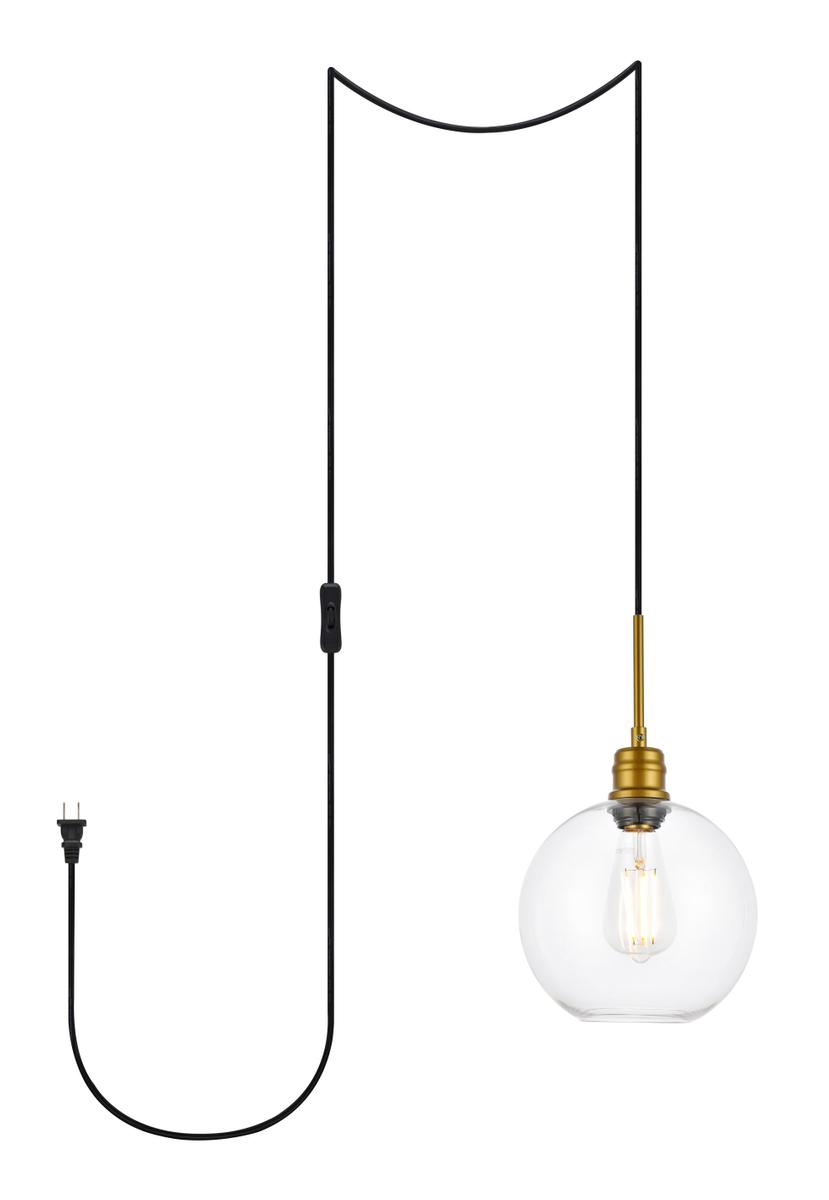 Clean lines and modern whimsy–that’s the Emett Collection of plug in pendant lamps. Its Single light makes it perfect for any small apartment or room space, but its also a perfect addition to any larger rooms that requires illumination, such as a dining room or living room. Available in a black or brass finish with a round clear glass shade, it won’t be too hard to fit this versatile lighting fixture in your home (light bulbs not included). Comes with a 15 foot cord with an in-line on and off switch. Also includes two swag hooks. Simply hang this piece on the provided swag hooks and plug it in for an effortlessly easy installation – can be hung from a sloped or vaulted ceiling.