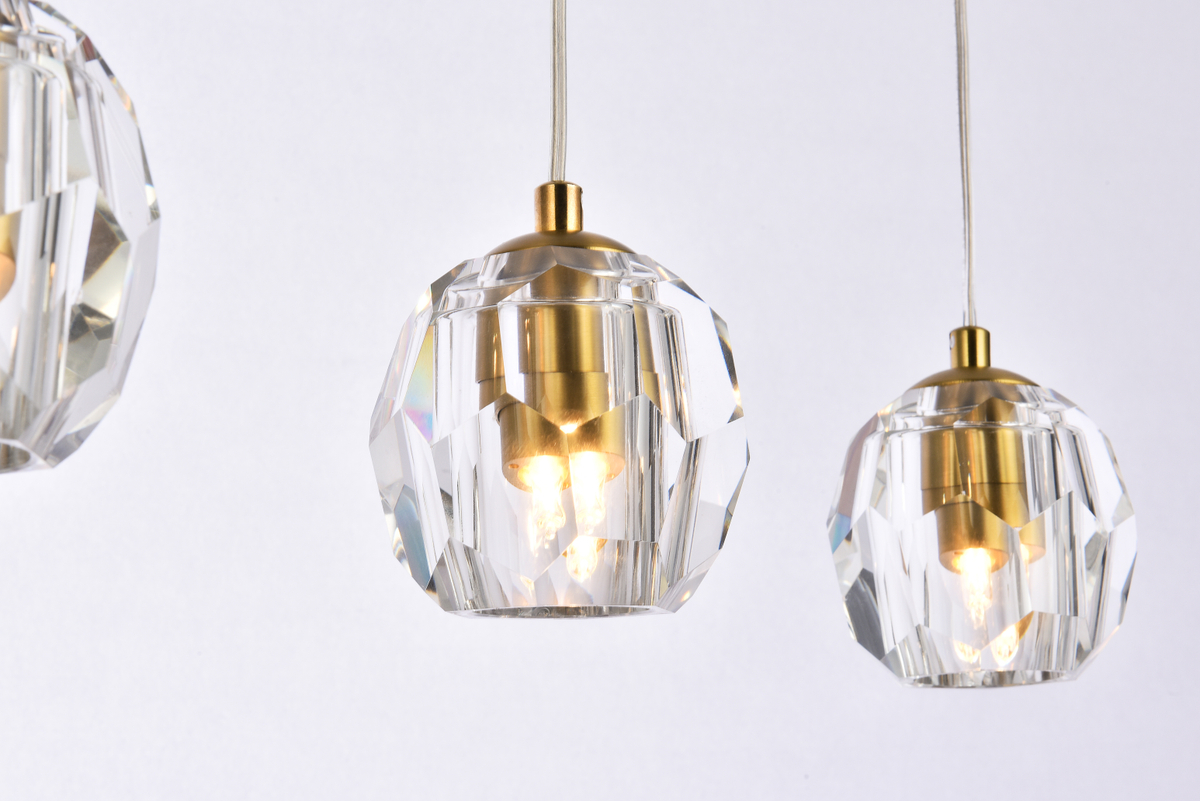 Like enchanting bubbles of air surfacing from the fathoms of the deep sea, the Eren contemporary hanging pendant adds lighting with richness and grace. The layering of clear crystal globes offer softened, harmonious light to match a variety of home décor. Creating an environment of sophistication, this beautiful hanging pendant adds drops of magic to express your refined style.