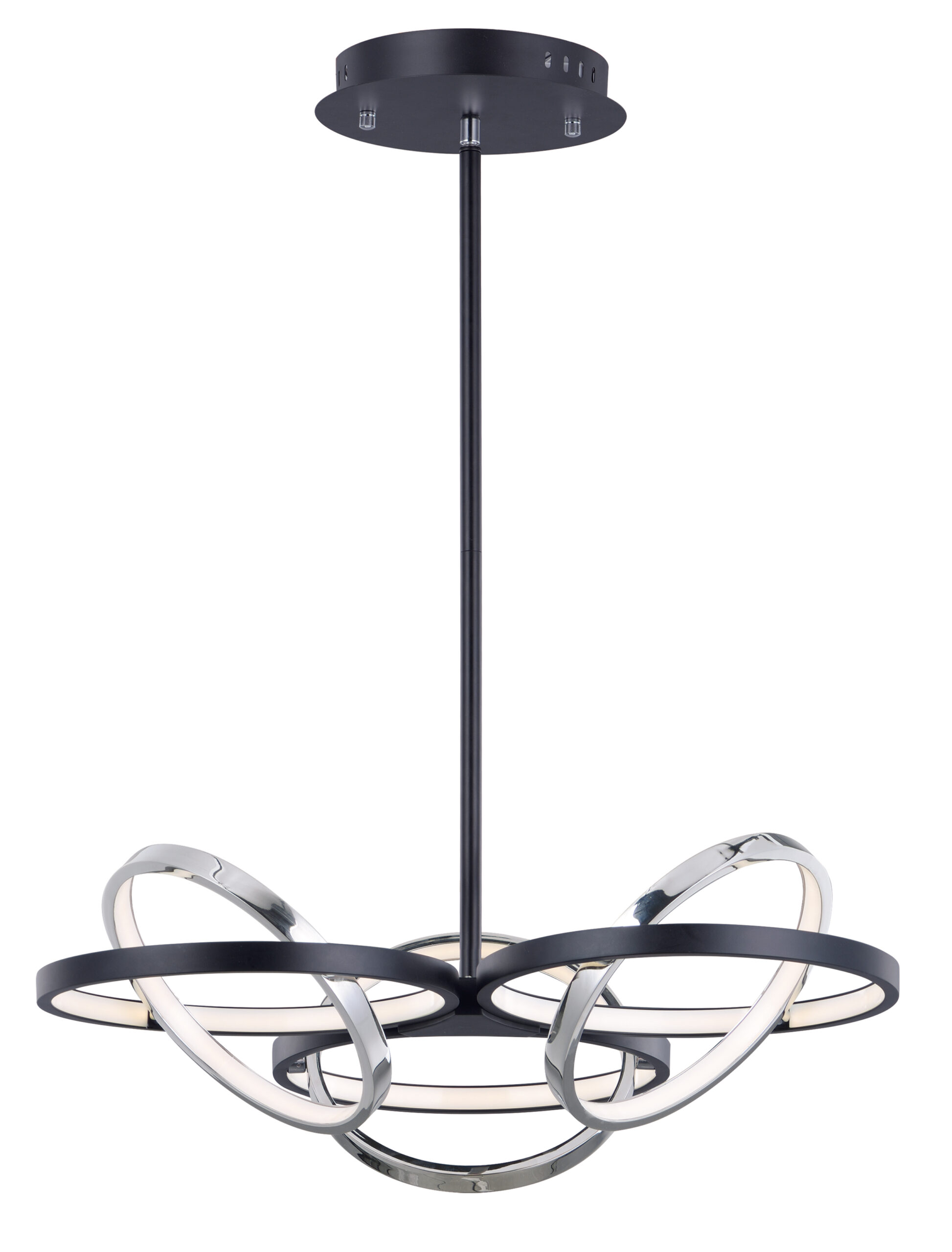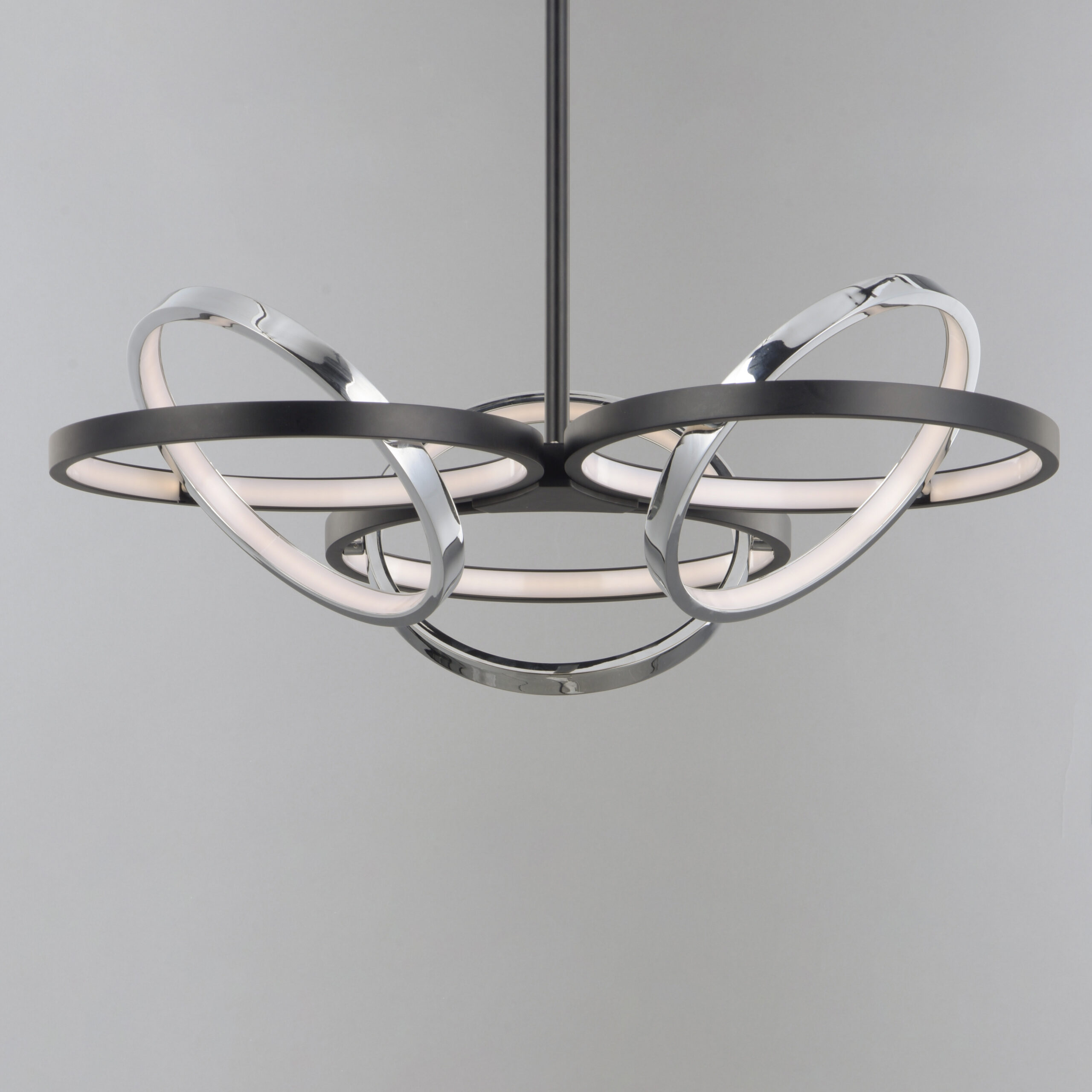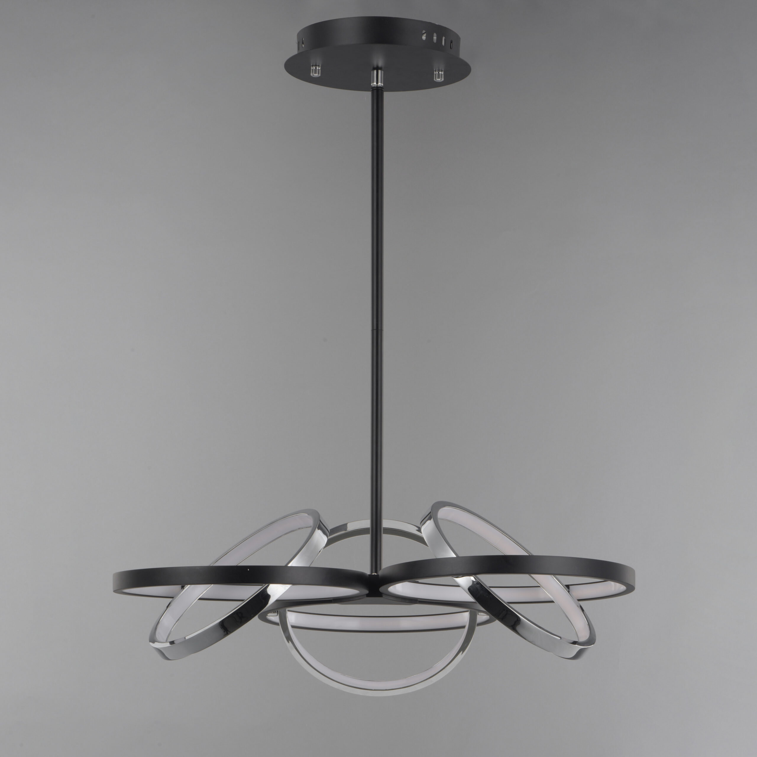 A very unique and interesting design that features concentric bands of Polished Chrome or Black that rotate on 3 axis points and adjusts in multiple directions similar to a gyro. The edge of each slender band encases a small LED strip covered by a frosted lens. This work of art is so much more than just a lighting fixture.