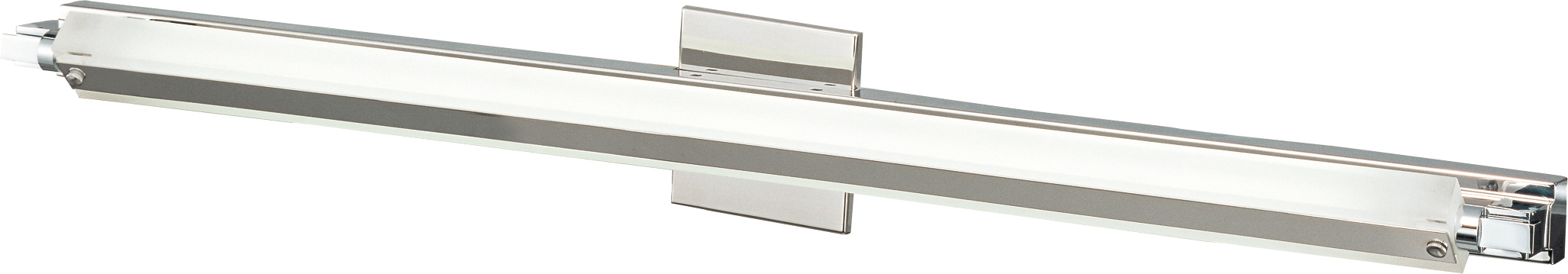 Redefining wall-mounted lighting, the Pivot collection brings versatility to a once static fixture, adding uniqueness to any design space. Install this sleek Polished Chrome bar in any room or office and simply pivot it to instantly change the focus and the mood. Angled over a fluorescent bulb that saves energy, the elongated Clear acrylic with frosted edges diffuses harsh beams and casts the room in a pleasant light.