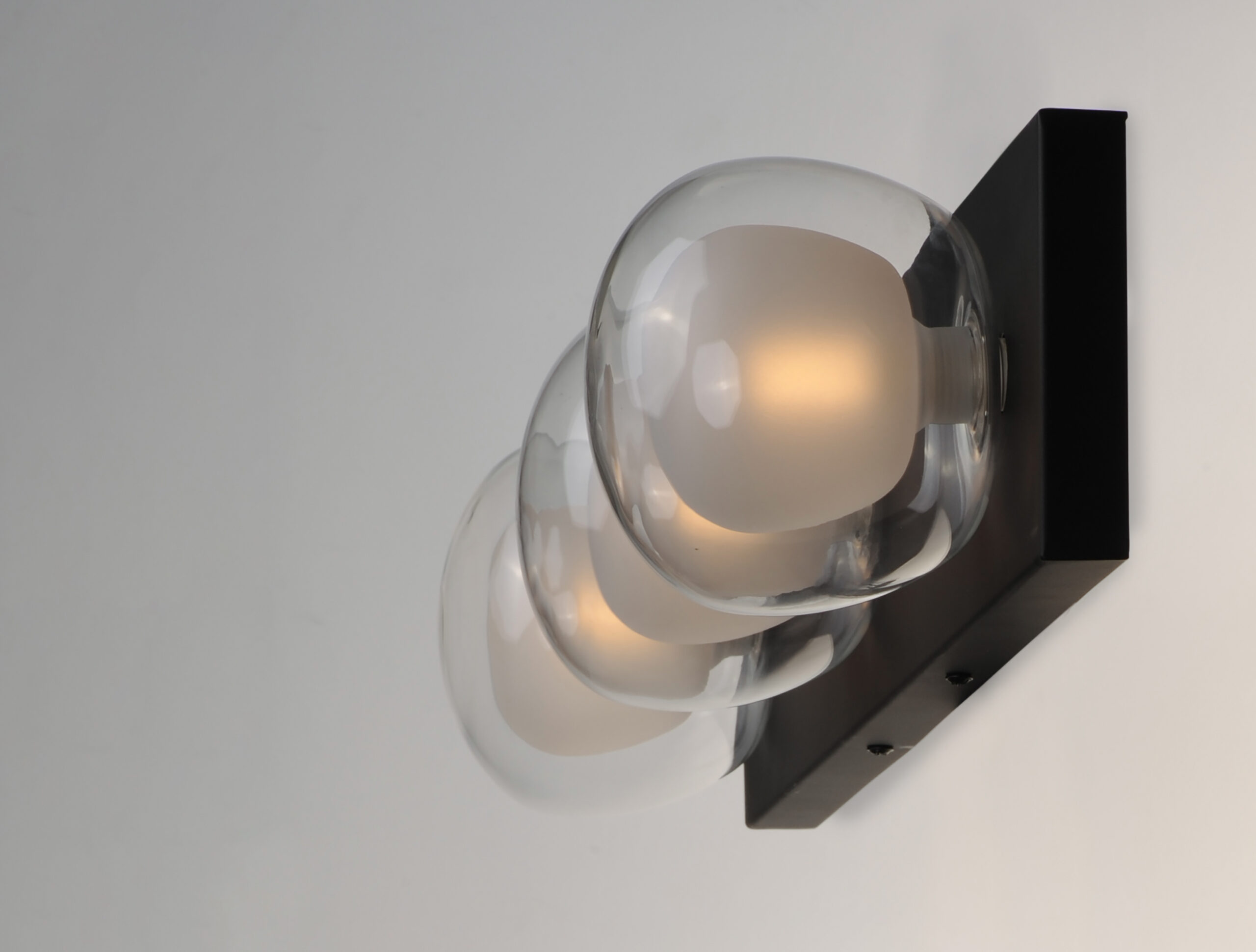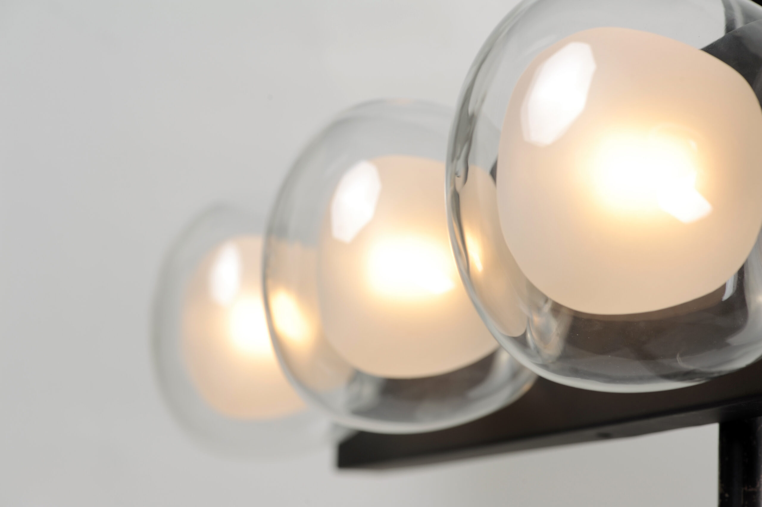 Branches of Black with Gold accent lift globes of Clear glass surrounding a nucleus of Frost glass. The globes attach to the fixture via threads for a clean and seamless installation. Replaceable LED G9 lamps are included for maintenance free operation.