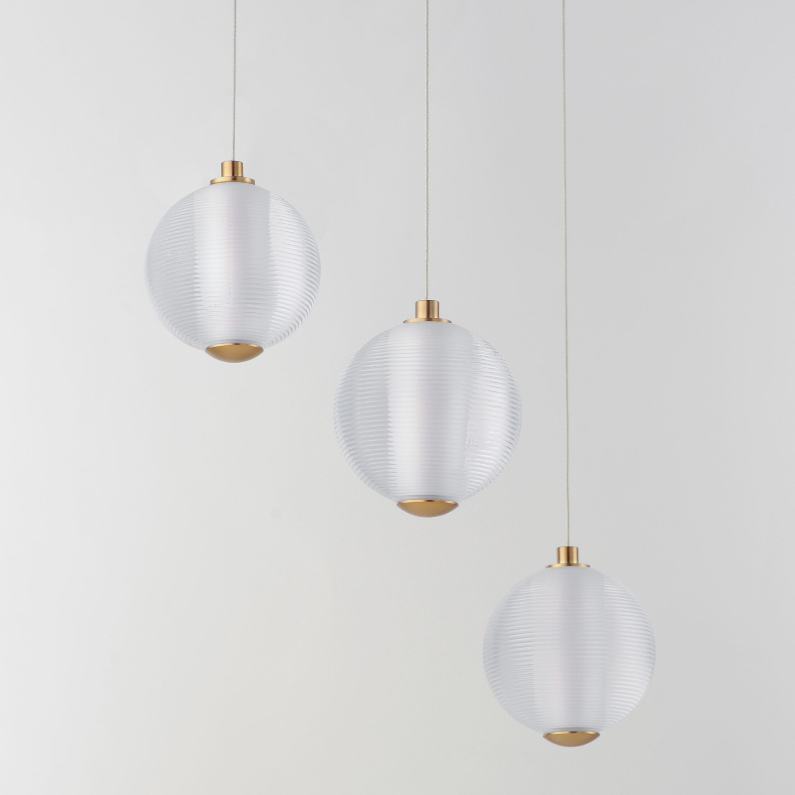 Ablaze with omnidirectional LED light radiating from the center of perfectly ribbed spheres, the lustrous glow within accentuates the repeating pattern on the glass’ exterior. With minimal hardware visible outside the glass, select from Polished Chrome or Gold to match your interior’s decor.
