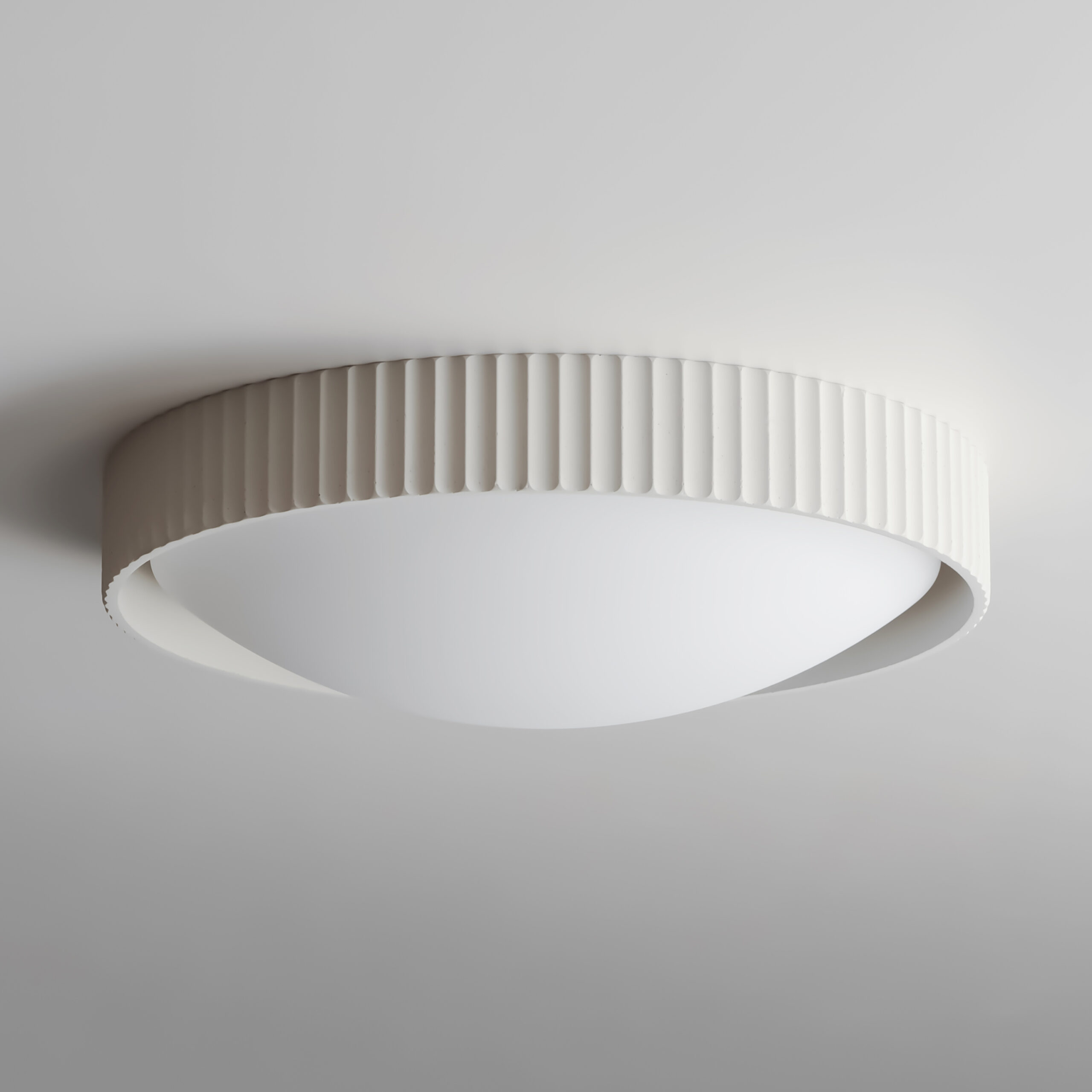 Deep pans of cast concrete in a traditional scalloped edge house LED integrated light sources behind curved opal white acrylic diffusers. Reminisce in the classical forms that benefits from the organic texture of cast concrete to add character to the design. Inspired by ramekins, these delectable LED treats are available in Chalk White, Terra Cotta, and Grey.
