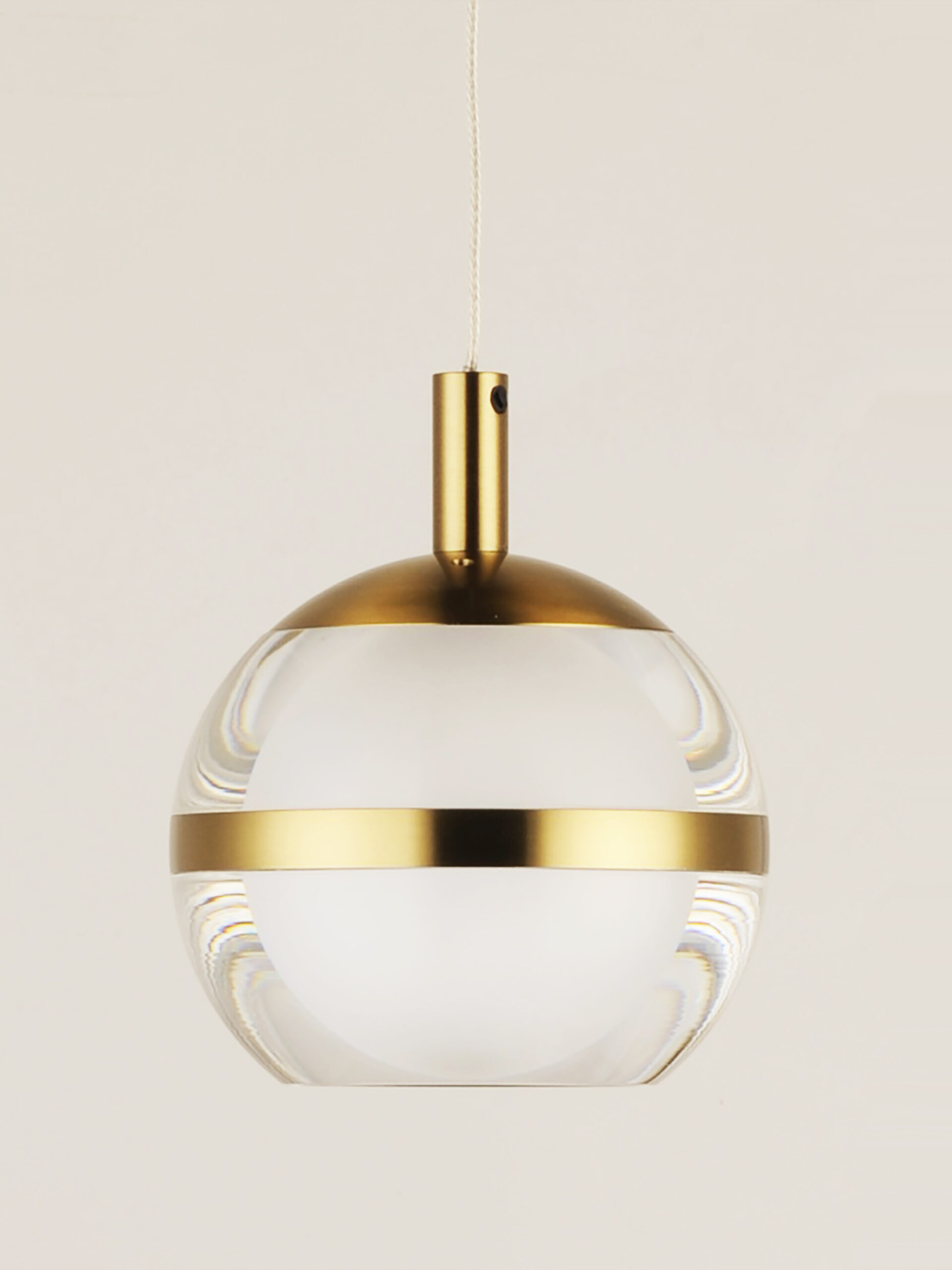 Orbs of crystal Clear acrylic are trimmed with a metal band and frosted inside for excellent light diffusion. The bottom is dimpled for a unique optical effect.