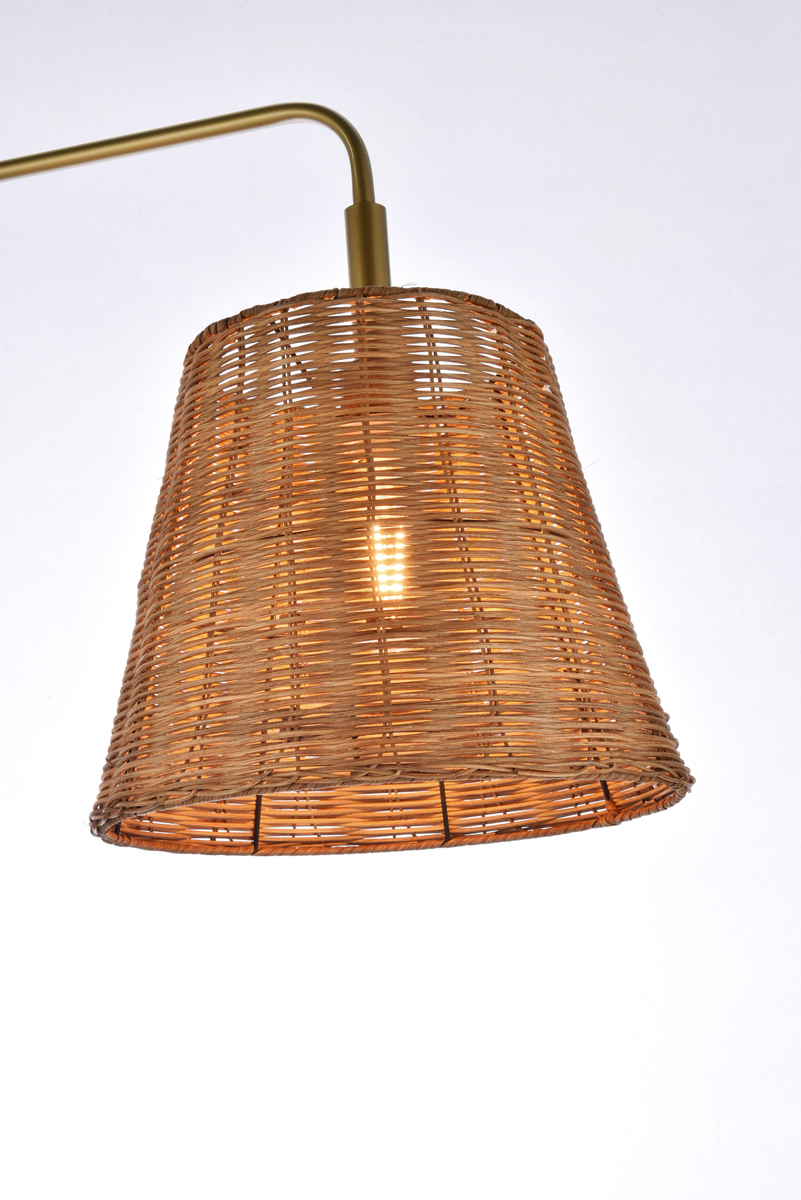 Illuminate your space in simply-chic mid-century modern style with this 74″ H floor lamp. Crafted with iron and rattan in a fashionable brass finish, this lamp features a tubular column post stemming from a rectangular pedestal base. A simple arm suspends one light in place, surrounded by a rattan dome shade. Powered by a 120″ length of cord and operated by a simple on/off switch, this lamp accommodates one 60 W incandescent medium base bulb (not included) to cast bright light throughout your space.
