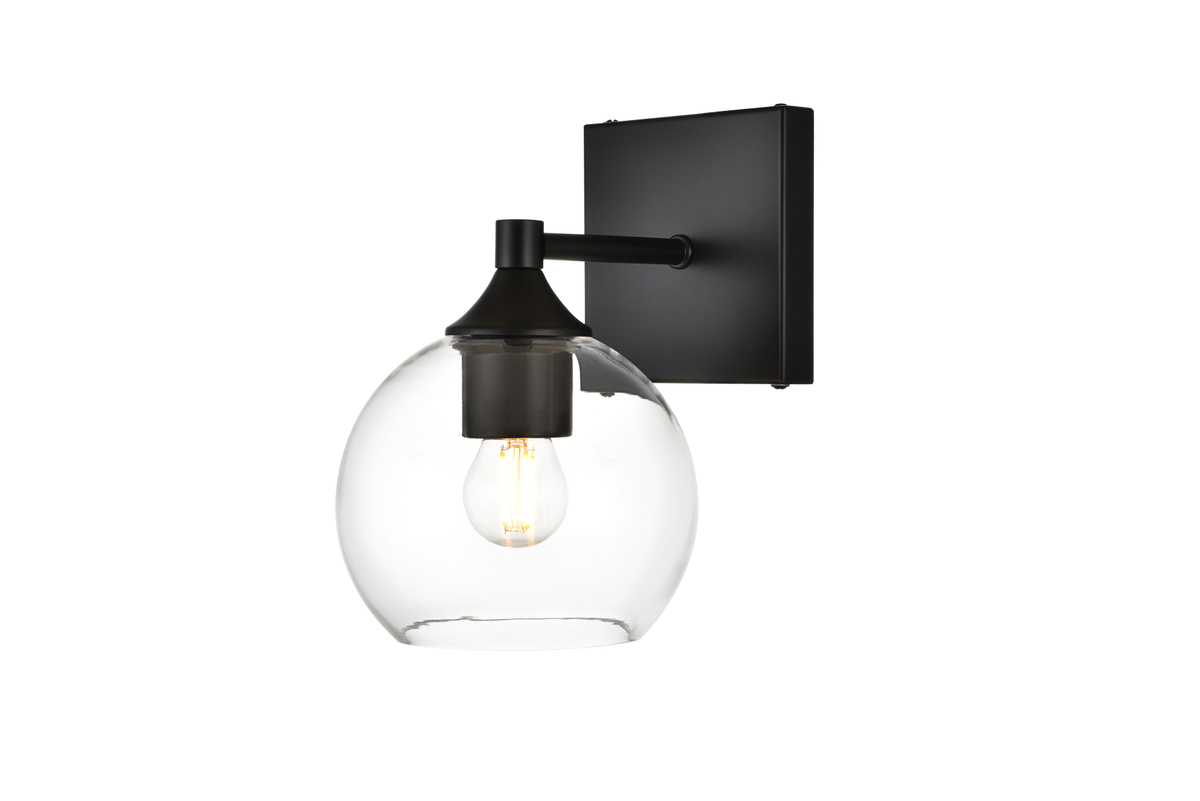 Defined by a sleek metal arm extends to suspend the clear pear-shaped glass shade. A contemporary stunner, it shows off the straight line details from the backplate and the streamline thick metal arm. Compatible with dimmers, so you’ll have the right amount of light in any given time of the day. Completely versatile, you can place this wall light as an uplight or downlight. Rated for use in damp locations, this will work perfectly over a vanity in your bathroom.