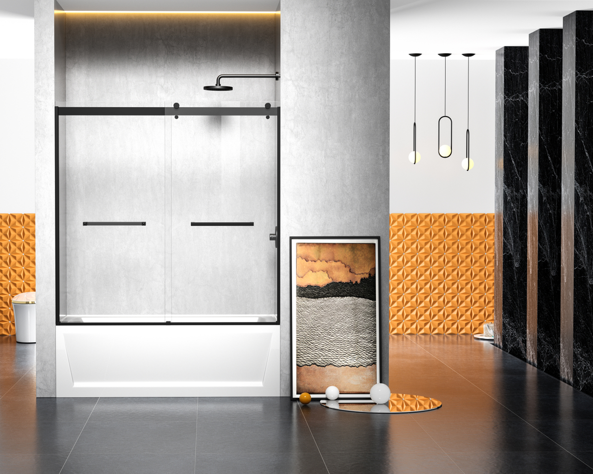 Transform your bathroom into a luxurious oasis with our stunning modern shower tub doors! Our doors are designed to offer both functionality and style, making your shower experience more enjoyable and comfortable. Crafted from high quality materials, our shower tub doors are not only durable but also easy to maintain, making them a practical and long lasting additional to any bathroom. We have four finishes available to choose from to help complement your bathroom décor and aesthetics. Semi-frameless double sliding tub door with 56″ – 60″ width adjustment range, cut the rails to size. Full length shower door seal thresholds are included to prevent any leaks. Anti-jump mechanism included to ensure safe and smooth door operation.