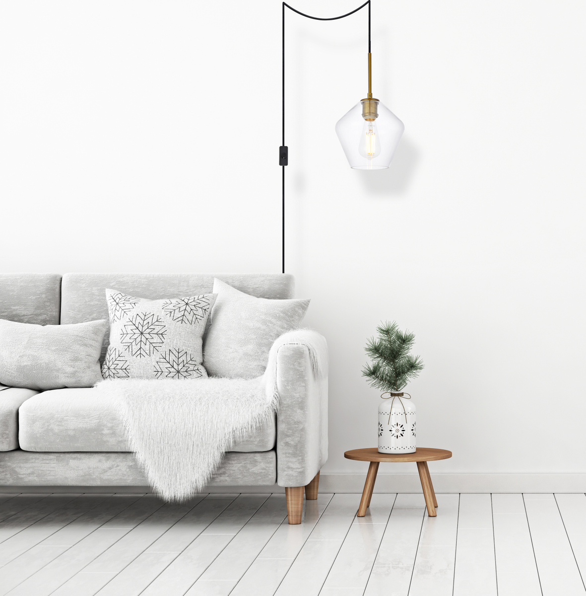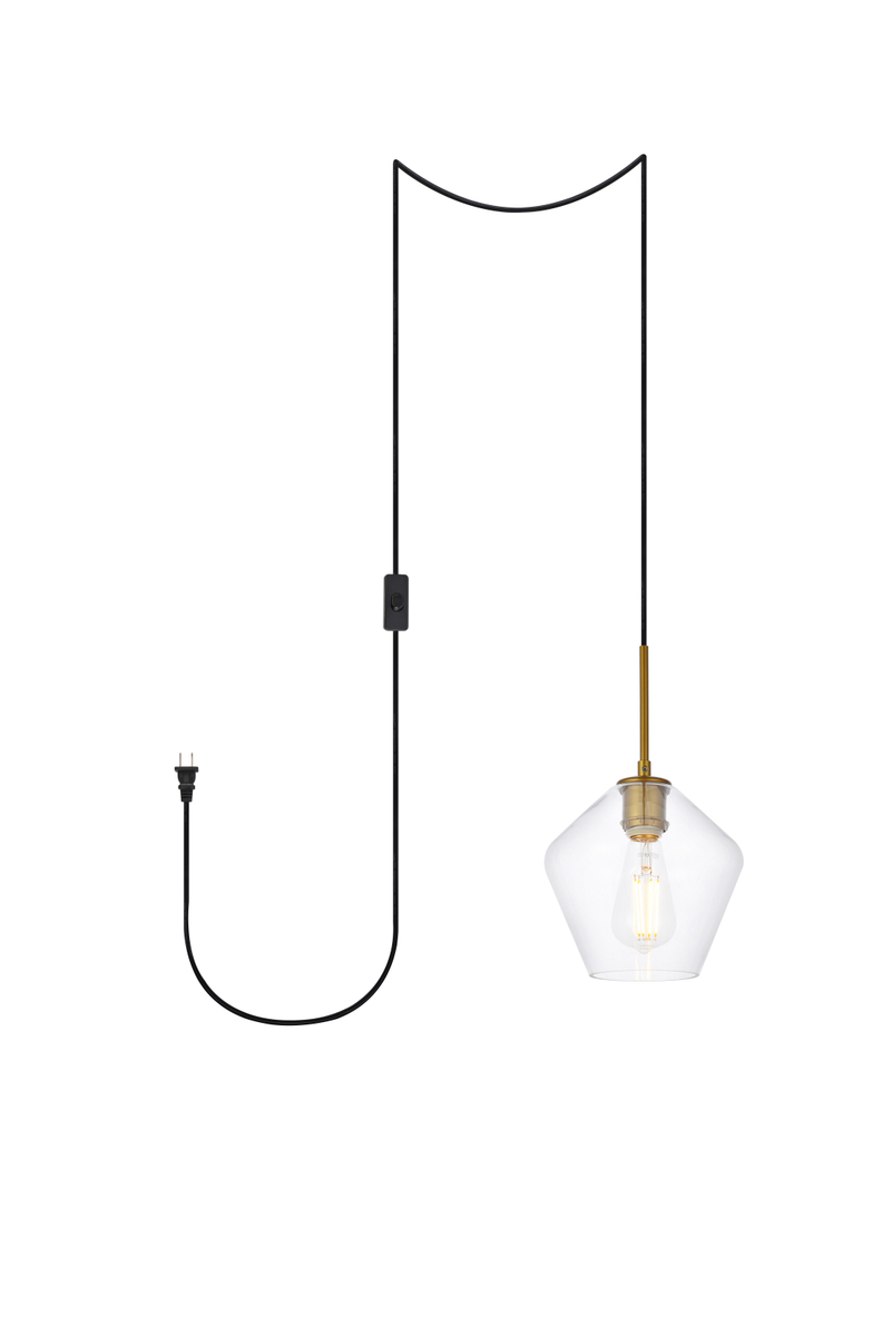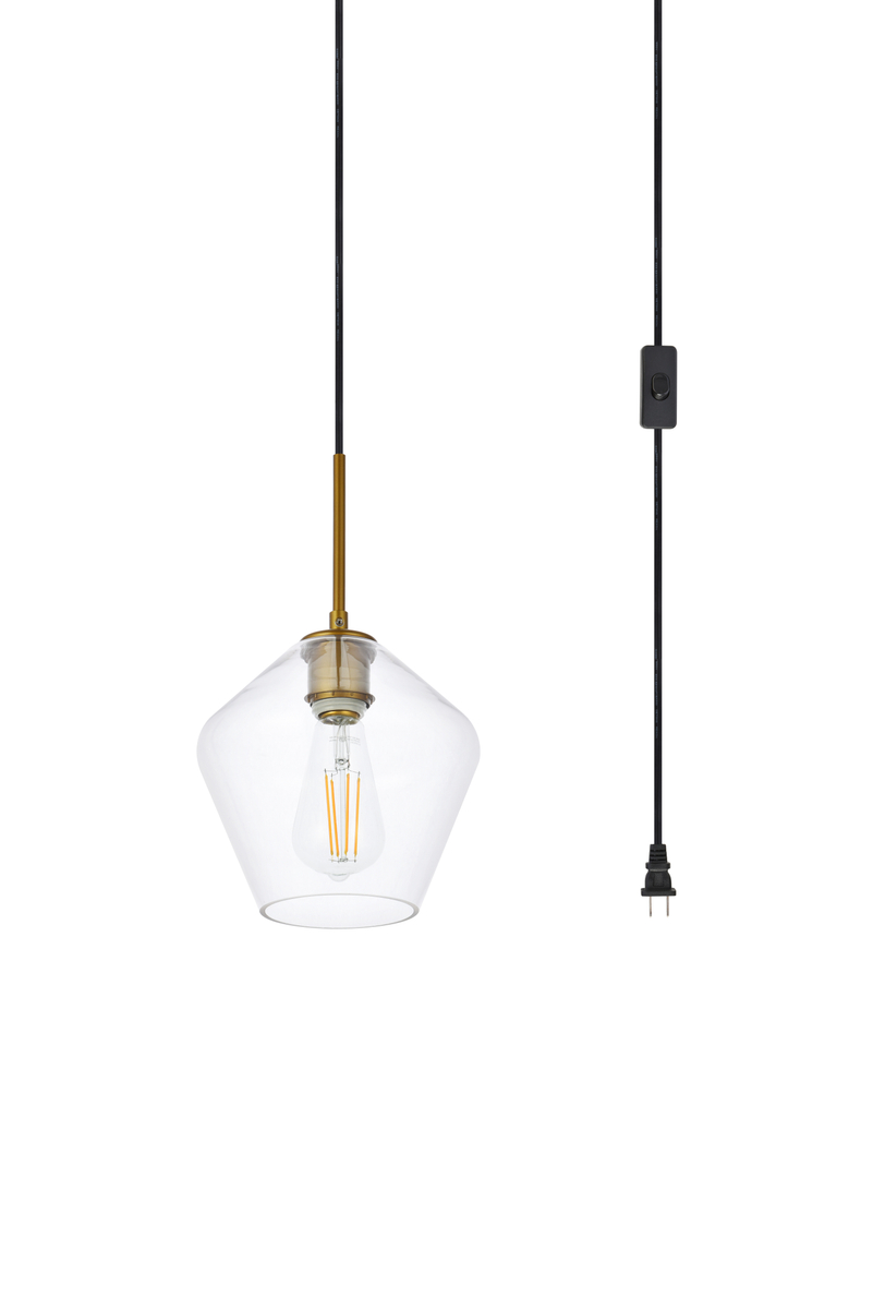 Gene 1 light brass and Clear glass plug-in pendant