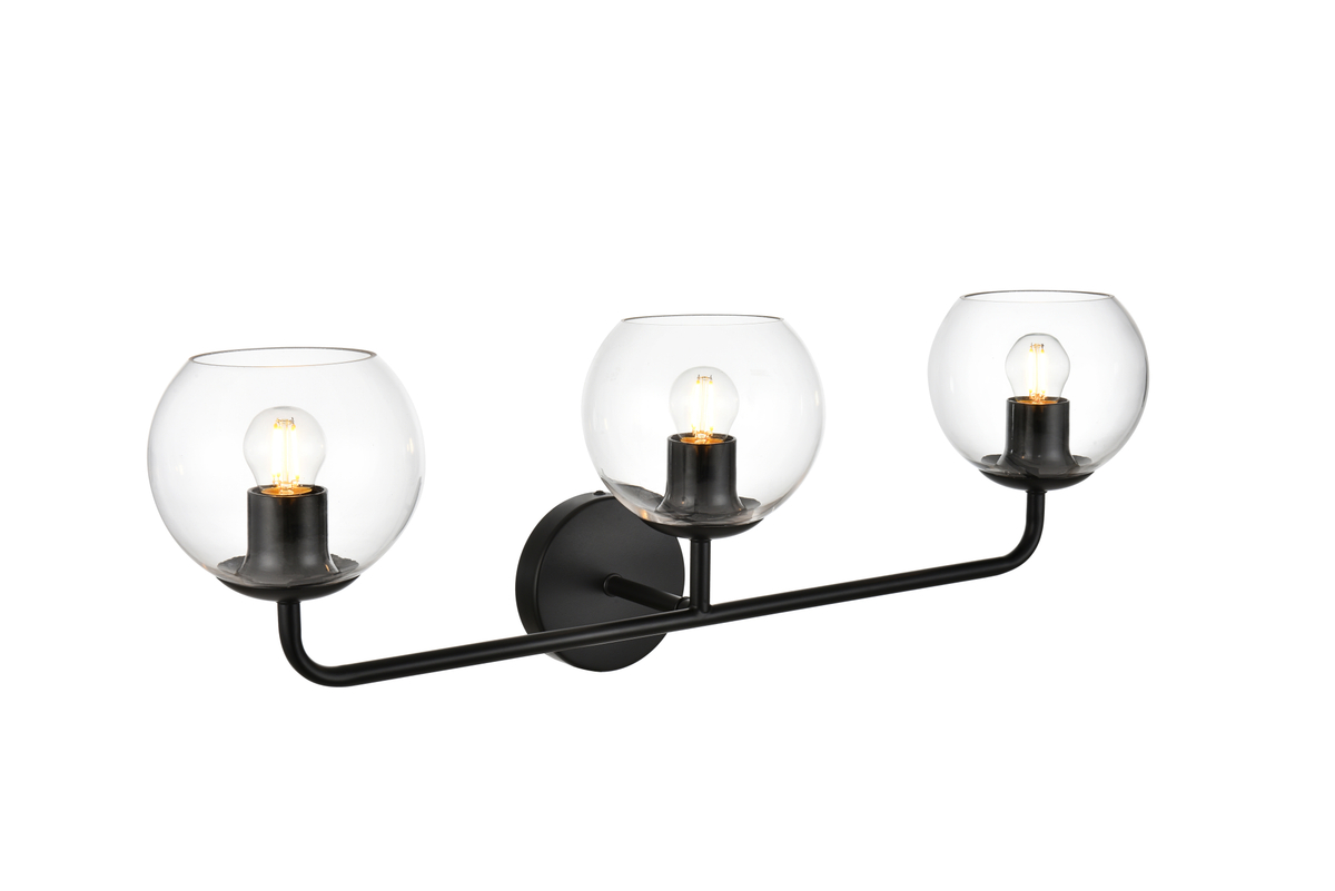 Genesis 3 light Black and Clear Bath Sconce