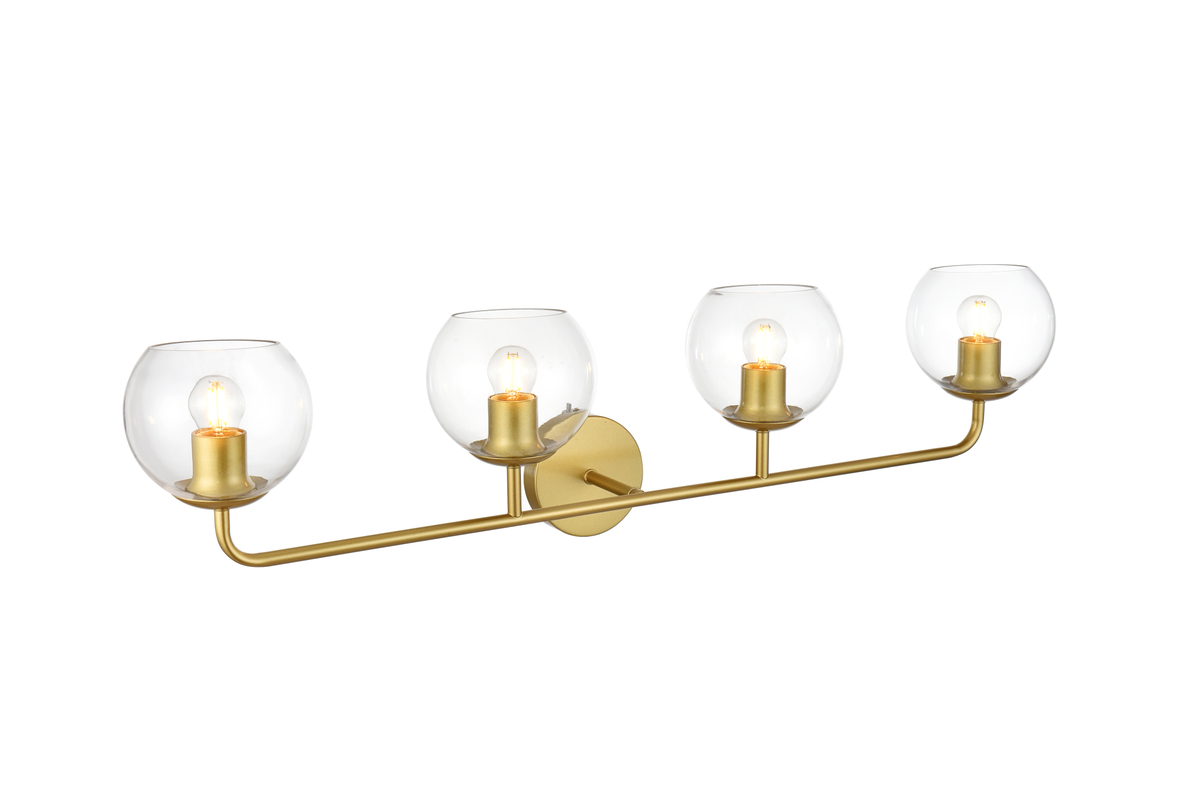 A modern twist on a traditional design, this vanity light is perfect for sprucing up your bathroom. Rated for use in damp locations, this iron fixture features a round backplate, curved arms, and orb accents. Completely versatile, you can place this wall light as an uplight or downlight. Rated for use in damp locations, this will work perfectly over a vanity in your bathroom.