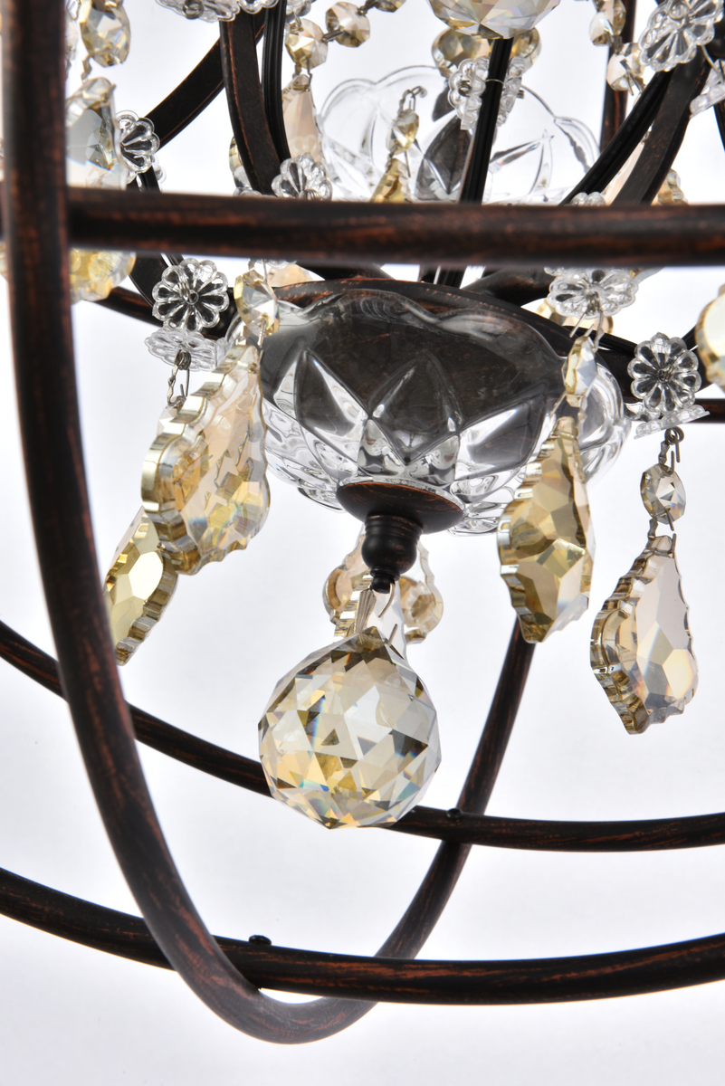 Geneva 5 light Dark Bronze Pendant Golden Teak (Smoky) Royal Cut crystal