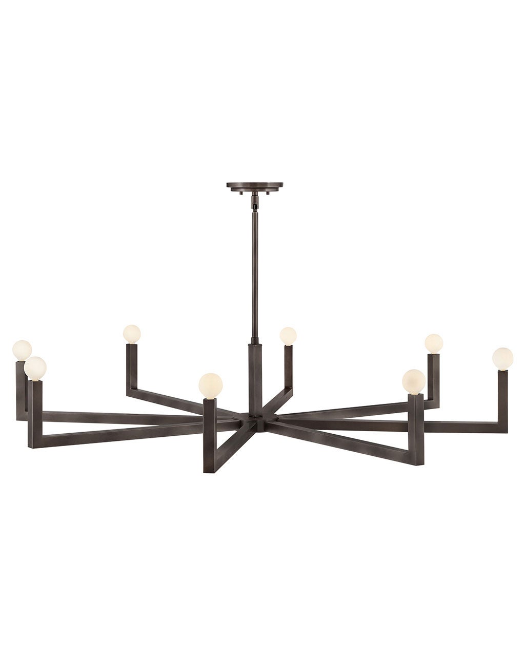Suitable for use in dry (indoor) locations as defined by NEC and CEC. Meets United States UL Underwriters Laboratories & CSA Canadian Standards Association Product Safety Standards. | This fixture includes multiple down stems in various lengths to customize the installation height of the fixture, including one 6″ stem and two 12″ stems | This item may be hung on a sloped ceiling | Bold silhouette with dramatic details creates a modern statement | Shown with G16.5 bulbs (not included)