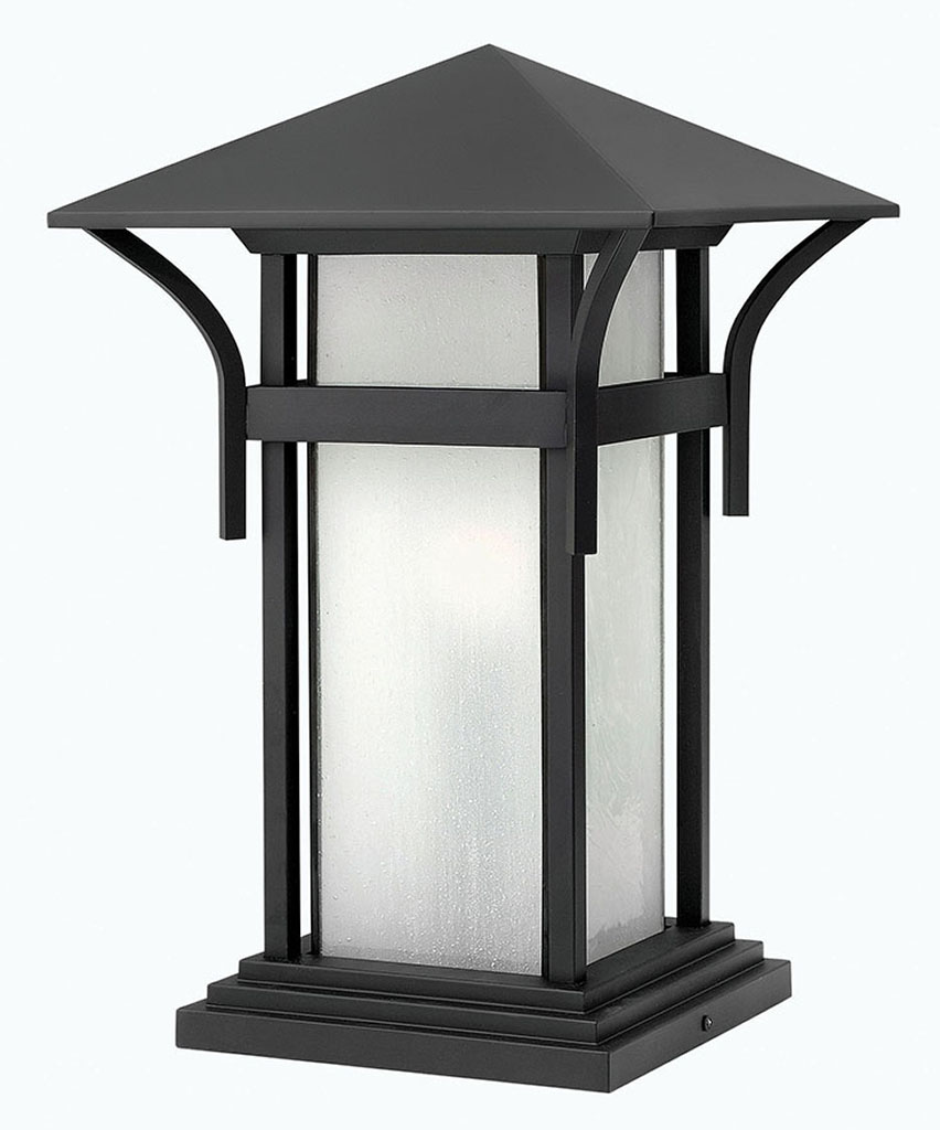 Harbor has an updated nautical feel, with a style inspired by the clean, strong lines of a welcoming lighthouse. The cast aluminum and brass construction is accented by bold stripes against the warm etched amber seedy bound glass.