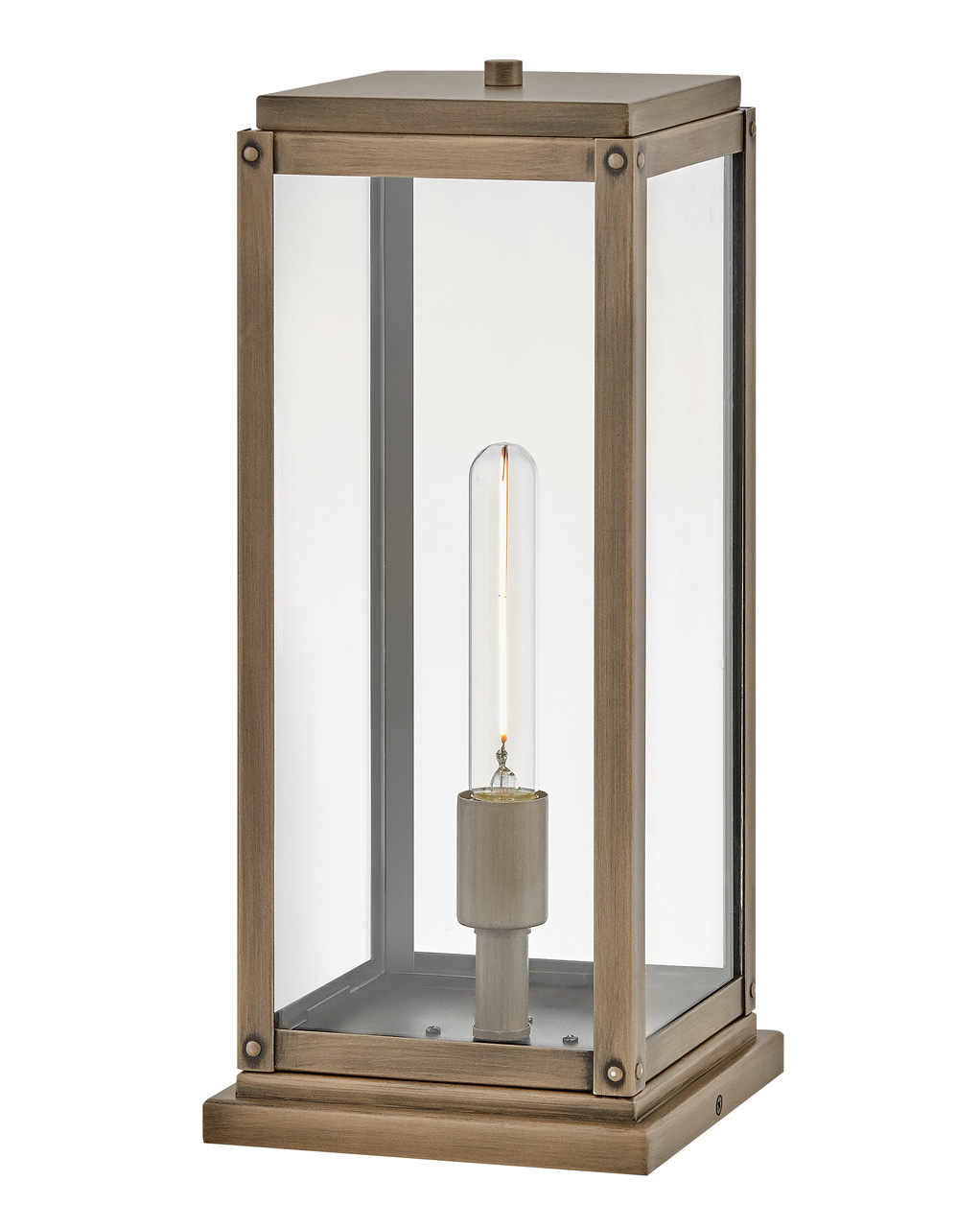 Innovative Exterior 12-volt solution for all-in-one lamp, lighting and high design look. Transformer is required and sold separately. | Our Estate Collections boast a breadth of fixtures defined by coordinating composition, enduring architecture, and time-honored craftsmanship, designed to meet the needs of expansive properties with extended outdoor living spaces. From the entrance of your driveway to the depths of your backyard, these collections provide cohesive design for stately exteriors. | Suitable for use in wet (outdoor direct rain) locations as defined by NEC and CEC. Meets United States UL Underwriters Laboratories & CSA Canadian Standards Association Product Safety Standards | LED Bulbs carry a 3-year limited warranty | 12-volt LED vintage filament bulbs included | Pier mount base only. | 2-year finish warranty | Images are for reference purpose only and may not be pictured with the specified LED filament bulb | Offers low voltage semi-permanent solutions for unique areas such as pergolas when paired with low voltage Hinkley transformer | Sophisticated and streamlined design, durable construction and a timeless finish complement any architectural style | Includes both etched white and clear glass panels.