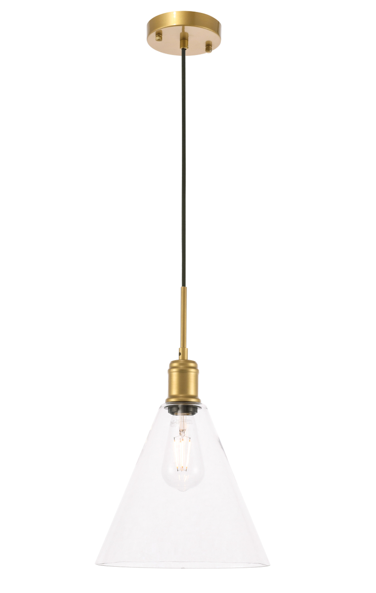 Hugh 1 light Brass and Clear glass pendant