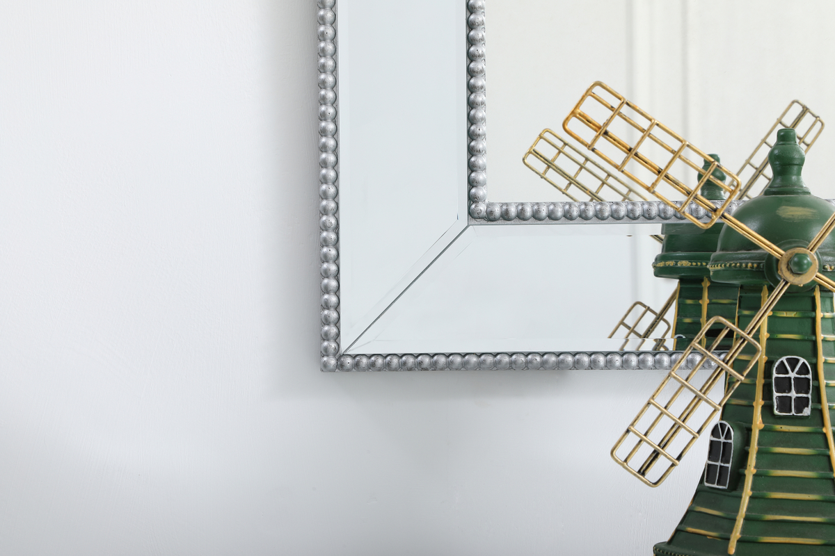 Iris beaded mirror 42 x 28 inch in antique silver