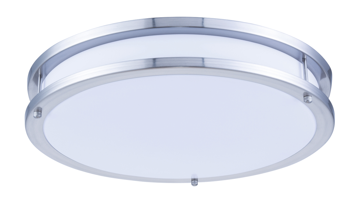 Tranquil and effortless as ripples on still water, Ripple collection flush-mount indoor fixtures bring serenity to the modern world. The circular iron frame in a brushed-nickel finish creates a polished exterior, while the multifaceted interior is engineered to maximize the 1750-lumen 5000K LED performance. The convex circular acrylic opaque frosted white lens shade is gentle on the eyes while still providing even light distribution. Ideal for a bathroom, closet, or studio. These super-bright, energy-saving (25-watt) fixtures have an average unit life of 50,000 hours and include a five-year warranty.